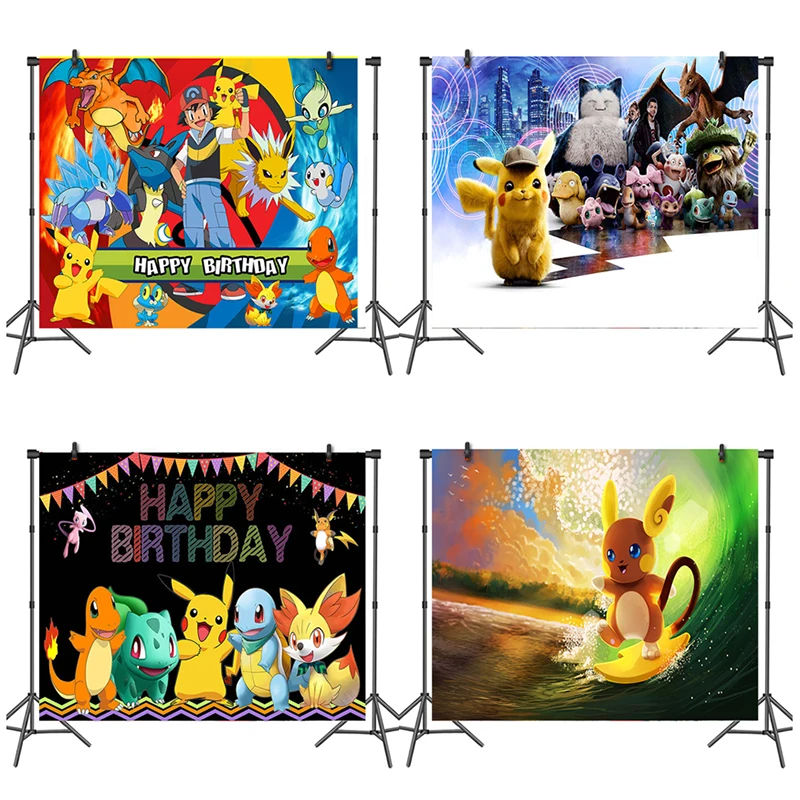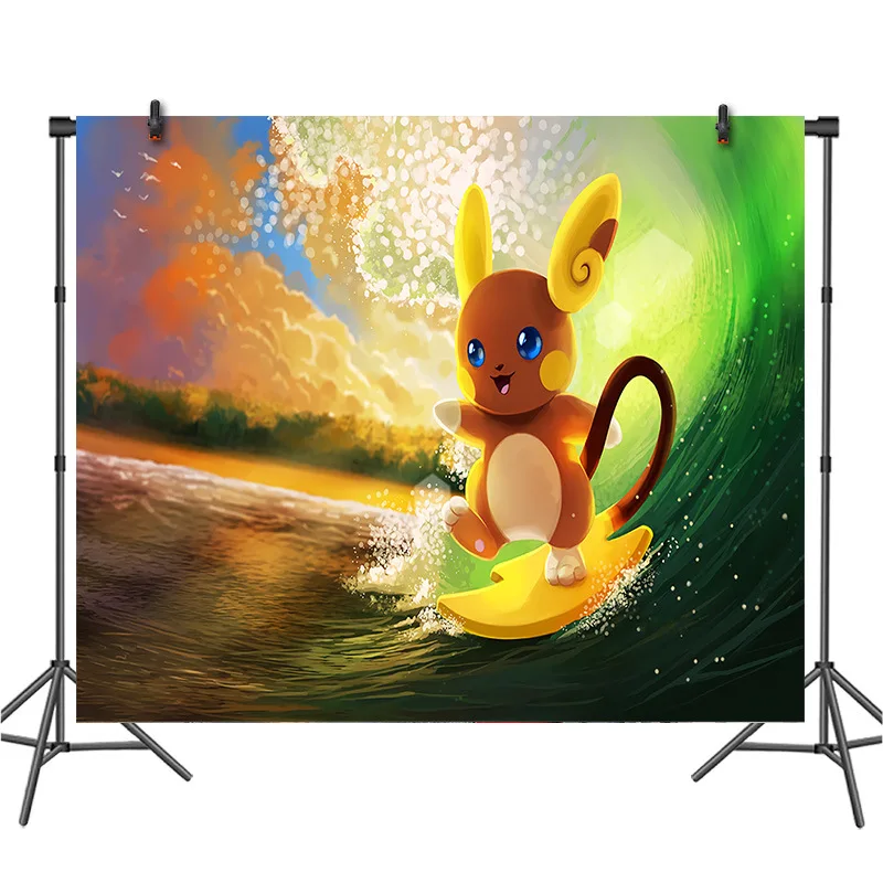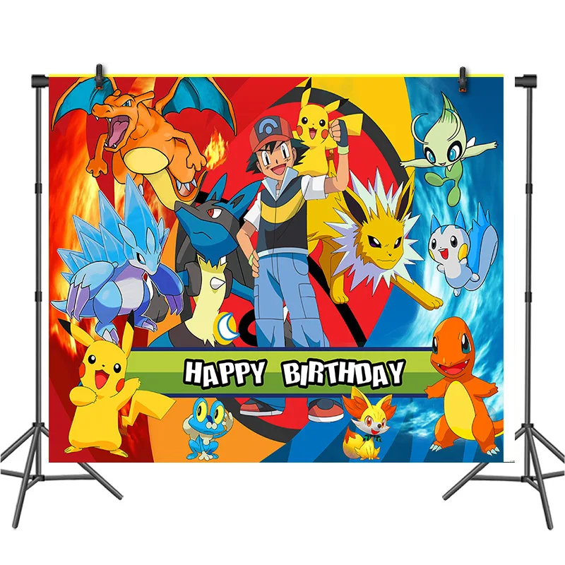 Фон для детской фотосъемвечерние с изображением покемона Пикачу аниме на день рождения
