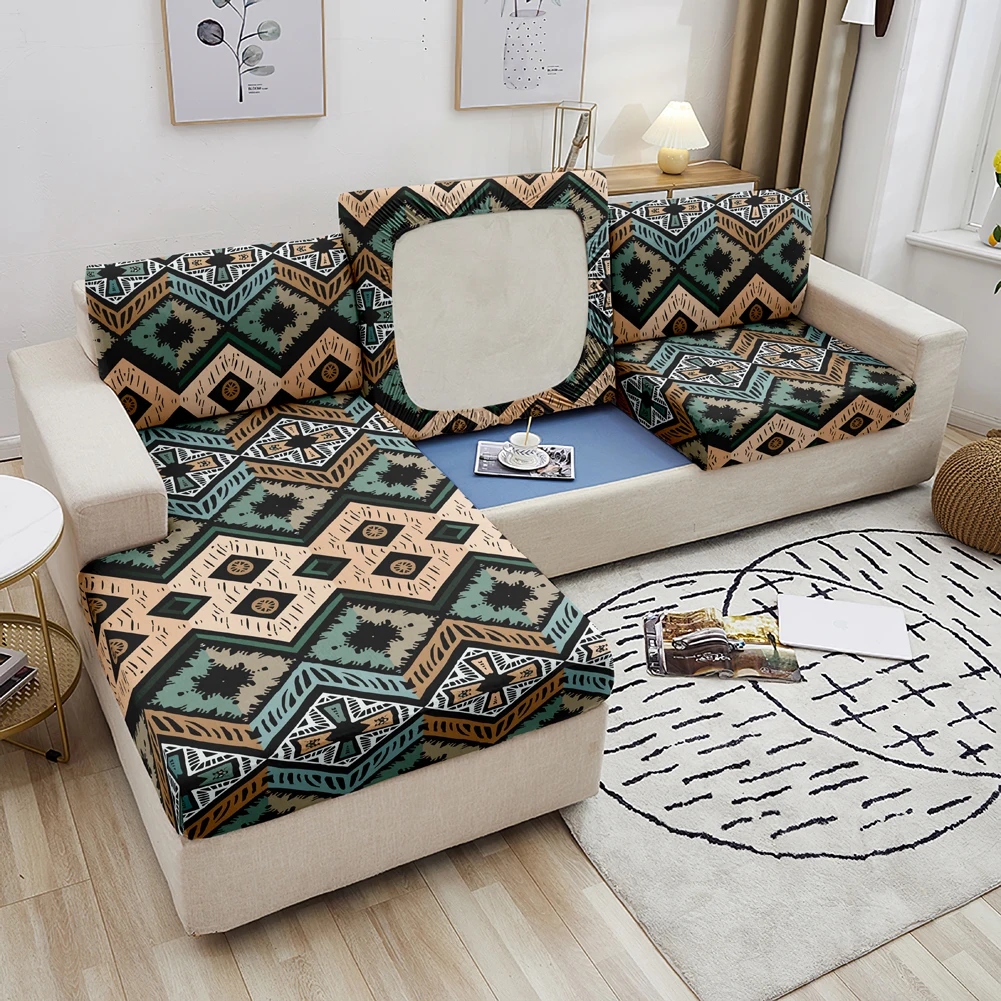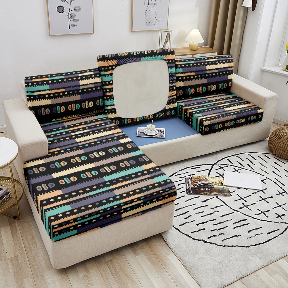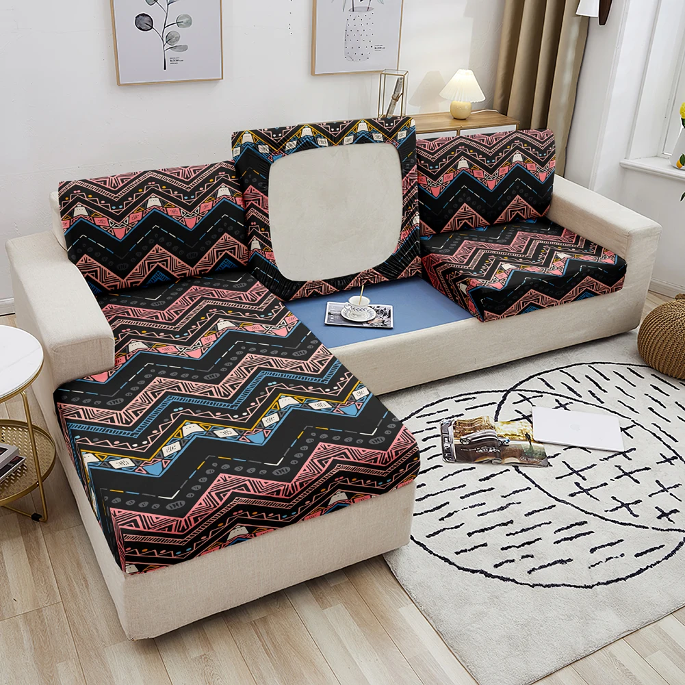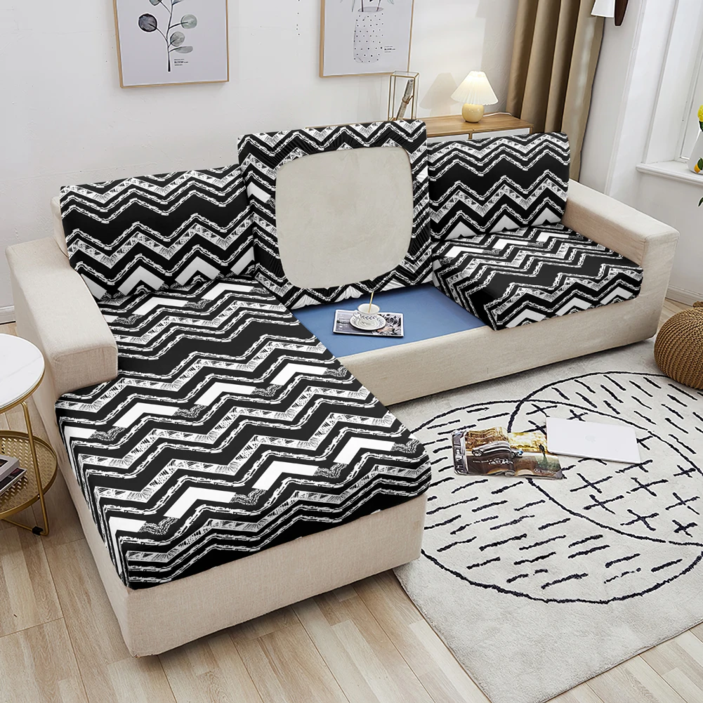 Эластичный чехол для дивана, Натяжной чехол на диван с геометрическ...