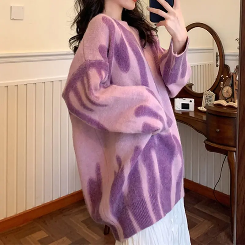 Женский свитер WHOUARE с длинным рукавом, топ на осень и зиму, ретро свободный свитер с узором, женская одежда, вязаный свитер с принтом