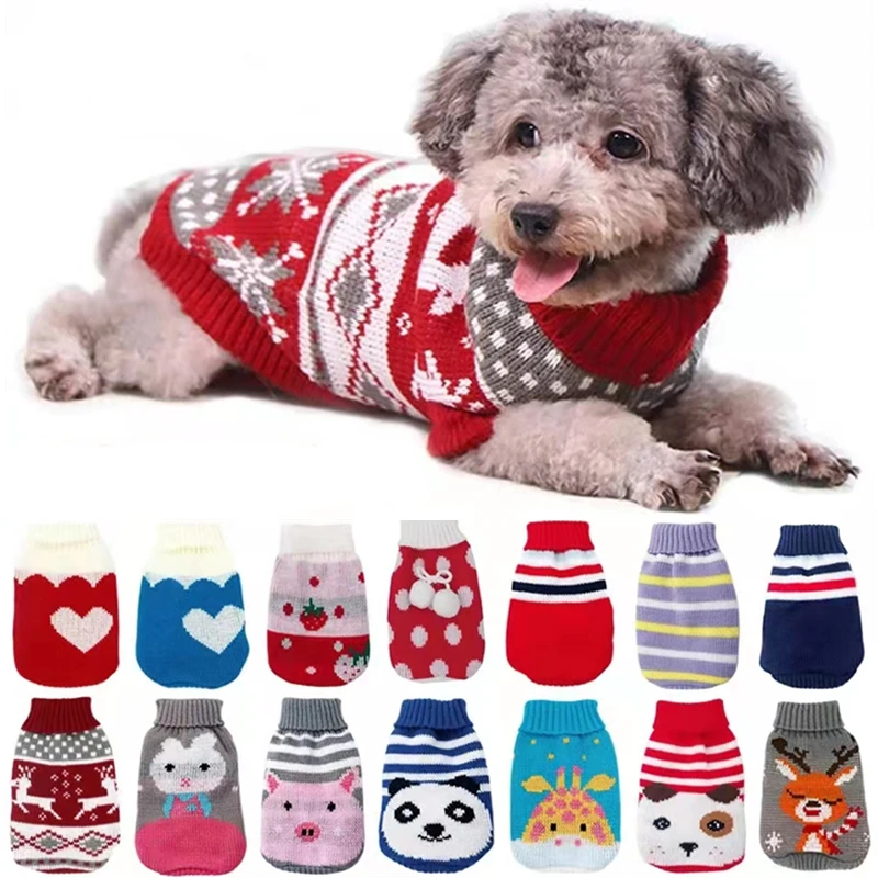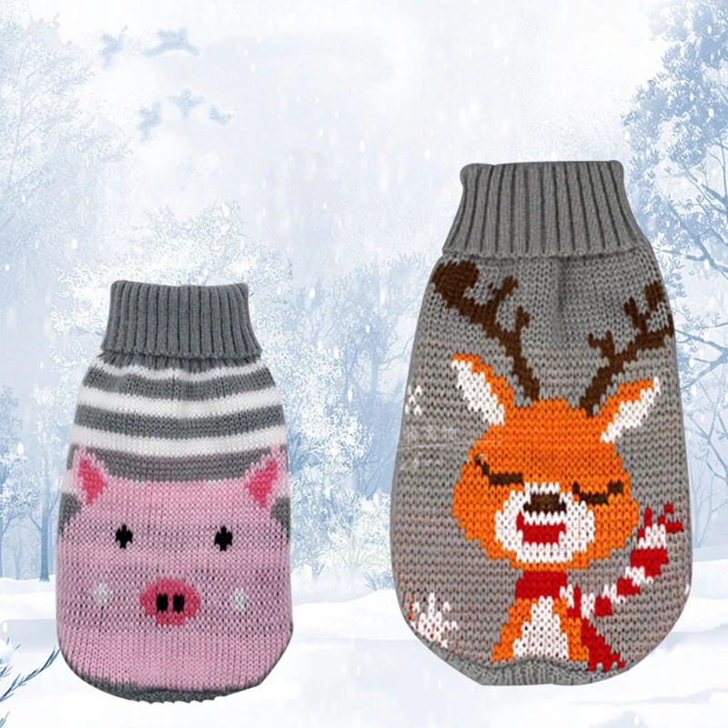 Теплая одежда для собак и кошек Рождественский вязаный свитер женская одежда для бульдога для маленьких средних щенков зимнее пальто для костюма