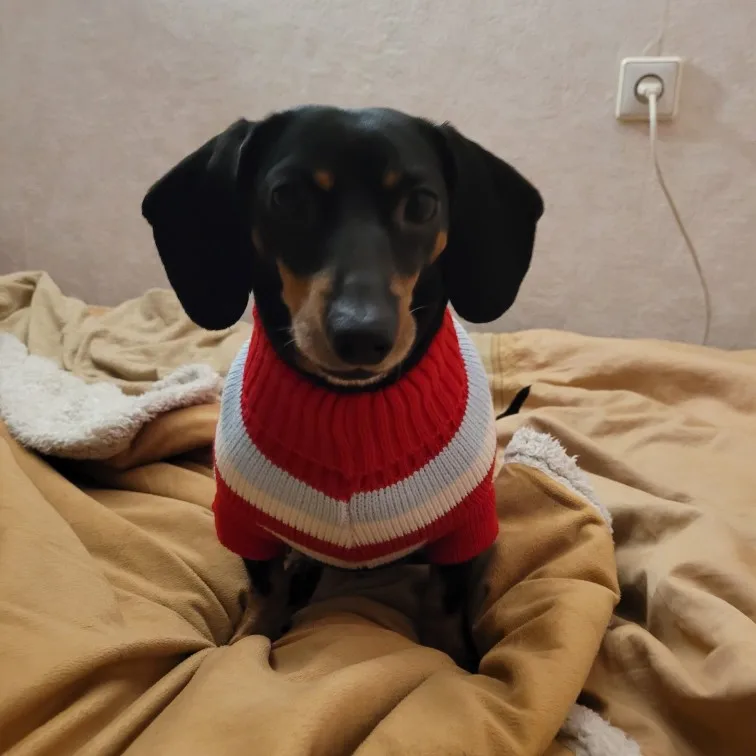 Свитер очень классный. Выбранный размер подходит для котят от 3 до 4 месяцев. Длина спины около 26 см. Доставка 2-5 недель. Скоро вырастет, я куплю его снова, спасибо!