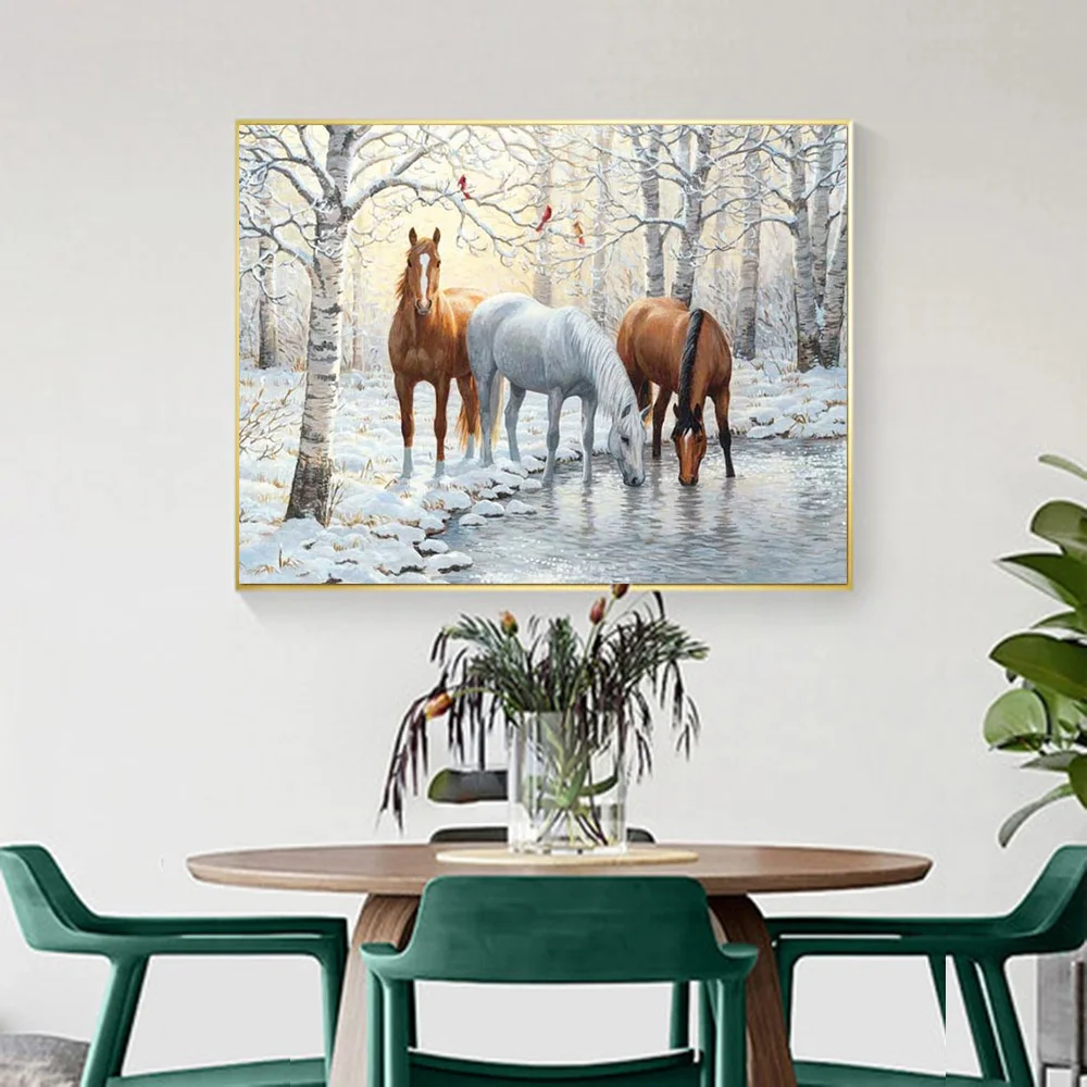 Алмазная живопись Huacan сделай сам, зимняя лошадь, Настенный декор, алмазная вышивка, мозаика, снег, животное, стикер для вышивки крестиком, Декор