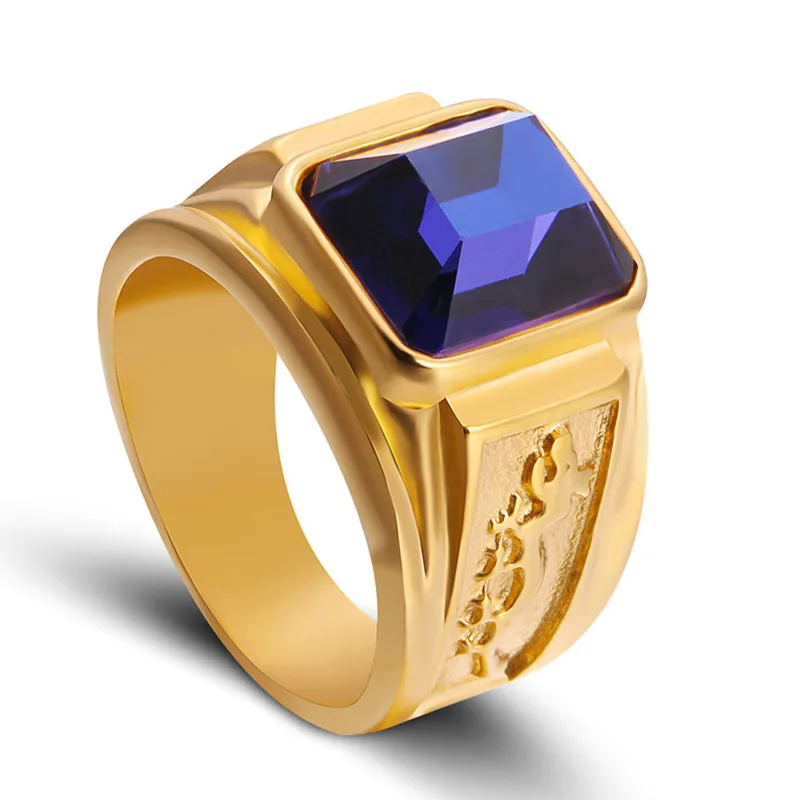 Мужское кольцо-вывеска Milangirl с драконом золотого цвета с чернымсиним кристаллом, классическое мужское кольцо с гравировкой большого камня, подарок на удачу для мужчин