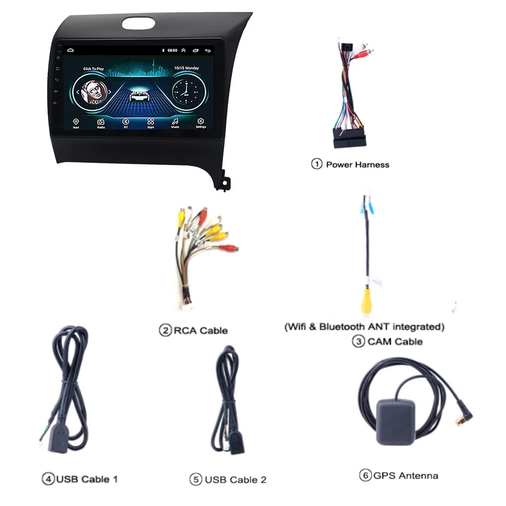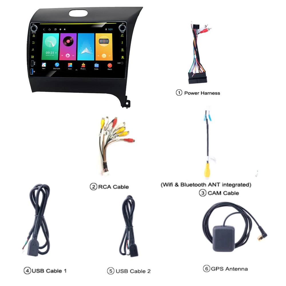 1 х KIA Cerato Android автомобильное радио1 х Кабель питания1 x Антенна GPS1 x вход камеры1 х RCA вход и выход2 x USB кабельРуководство по эксплуатации-1 шт.