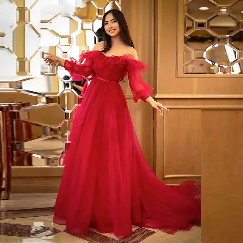 Женское вечернее платье, длинное платье с открытыми плечами, для выпускного вечера