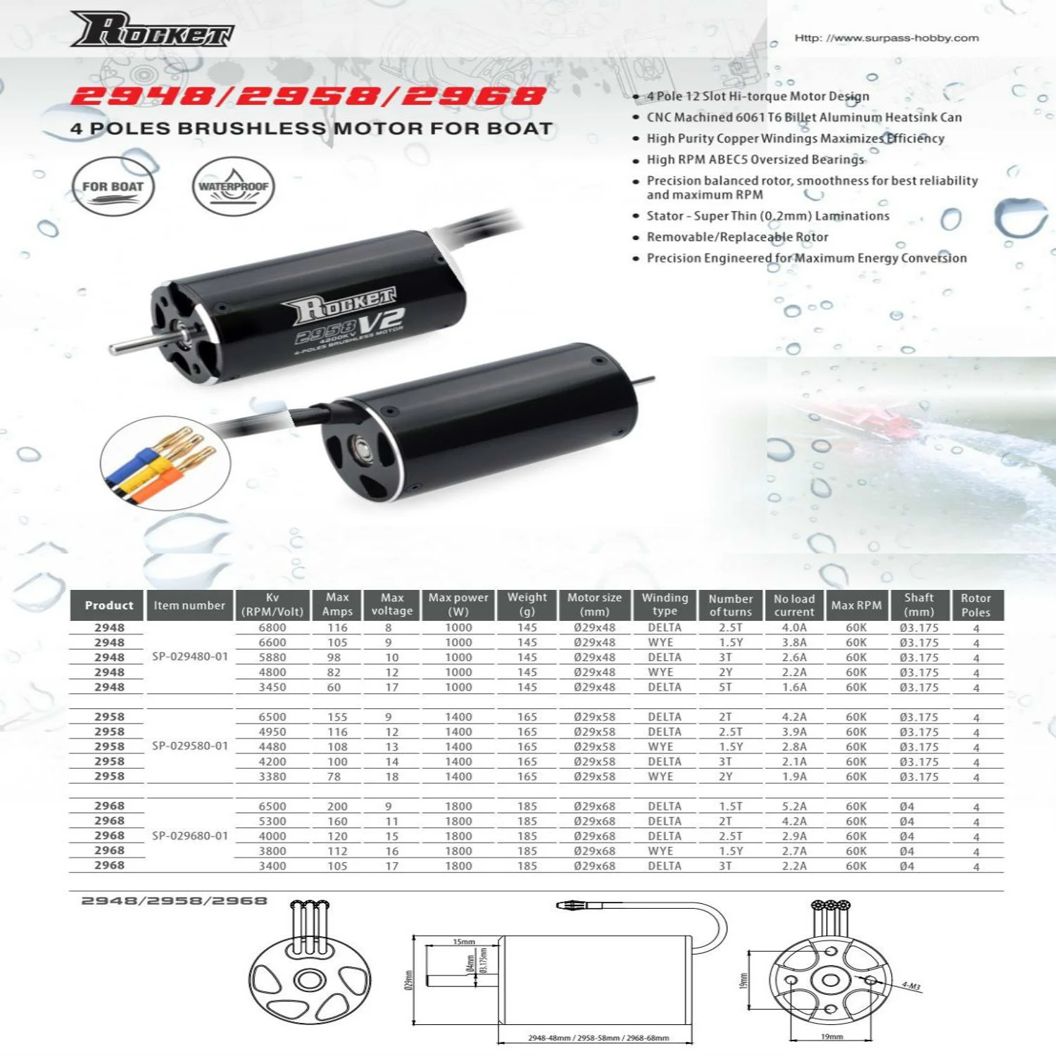Водонепроницаемый бесщеточный двигатель Surpass Hobby ROCKET 2958 4...
