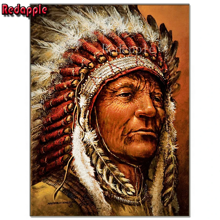 Индийский головной убор, индейский человек 5D, полная вышивка своими руками, мозаика, вышивка крестиком, вышивка крестиком, произведено вручную
