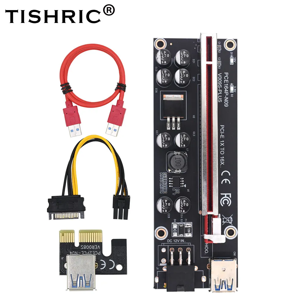 TISHRIC PCIE/PCI-E Riser 009S Plus Card Ver009s PCI E PCI Express GPU 6Pin 16X USB 3,0 Extender Mining Riser для видеокарты