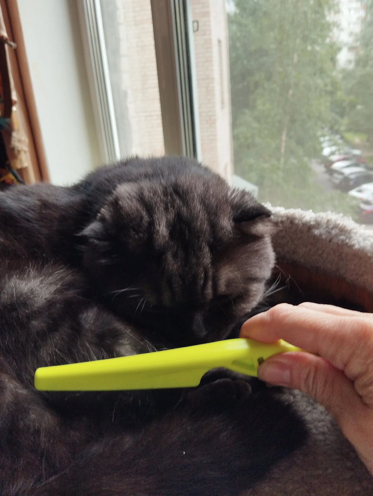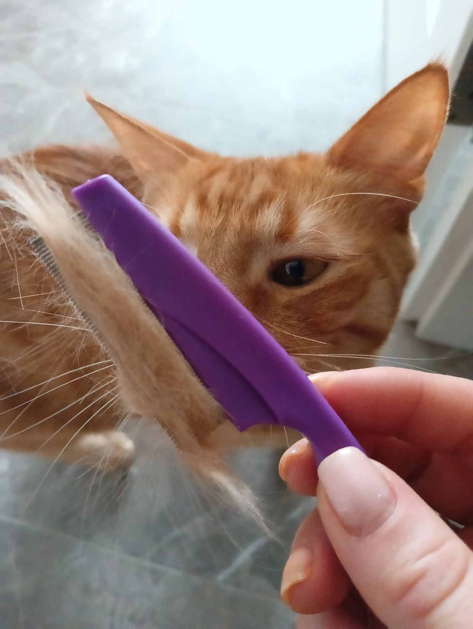 Кошки в очередь стоят , очень понравилось, когда их чешут расческой. Расческа удобно лежит в руке. Пух хорошо вычесывает. Покупкой довольна. Продавца рекомендую!