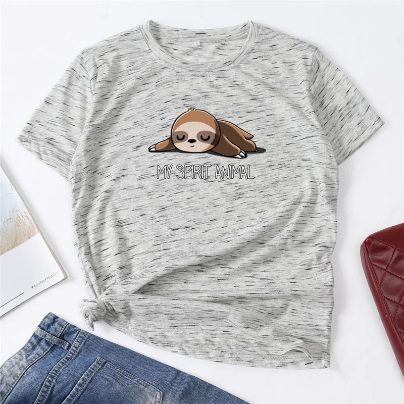 Летняя женская футболка из 100% хлопка, футболка с мультипликационным принтом ленивецов, Женские базовые футболки с коротким рукавом, топ, Повседневная Женская Повседневная футболка с круглым вырезом