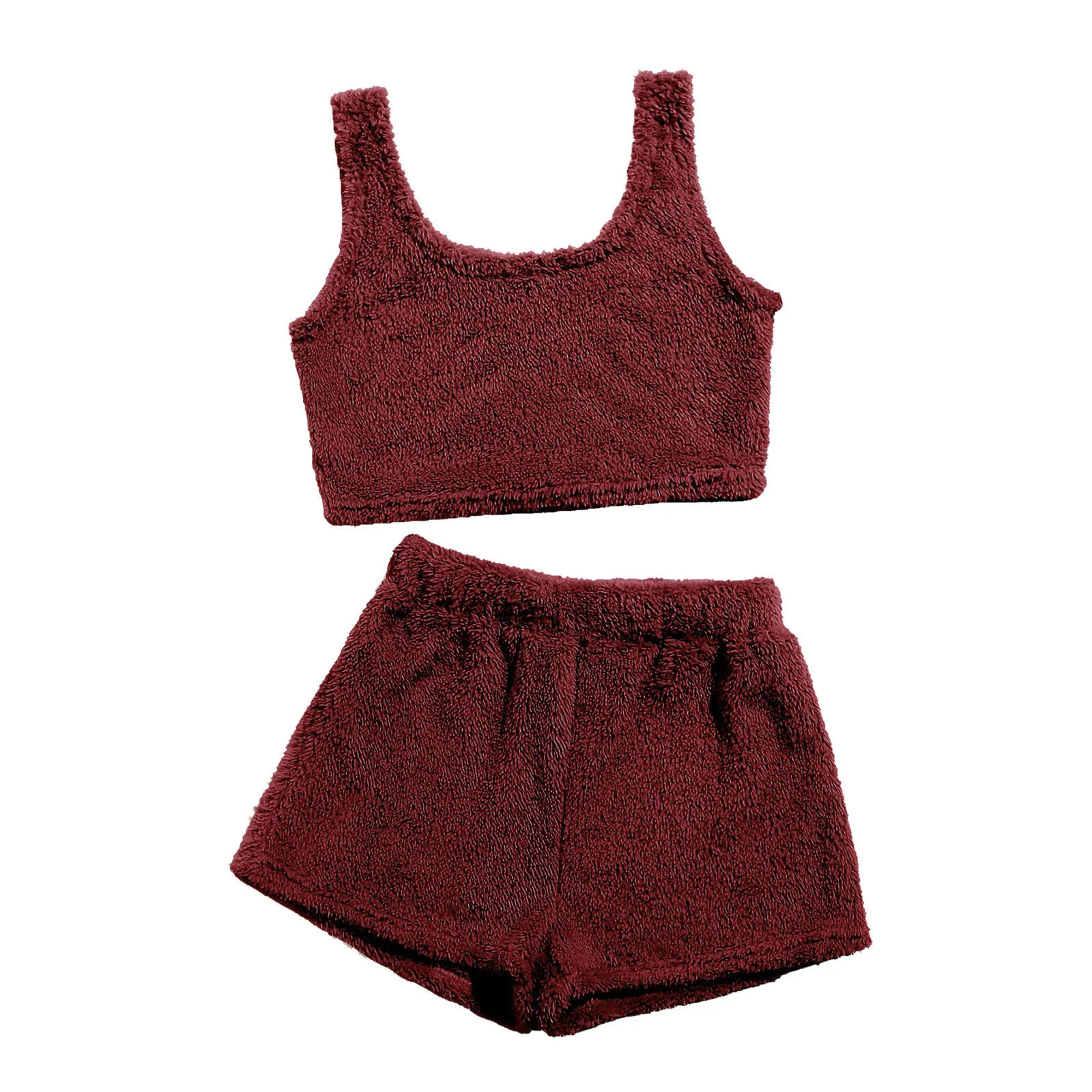 Зимний теплый Пижамный костюм, женский черный Однотонный пуловер с длинным рукавом и круглым вырезом, комплекты одежды для сна, топы для отдыха + шорты с принтом бабочки