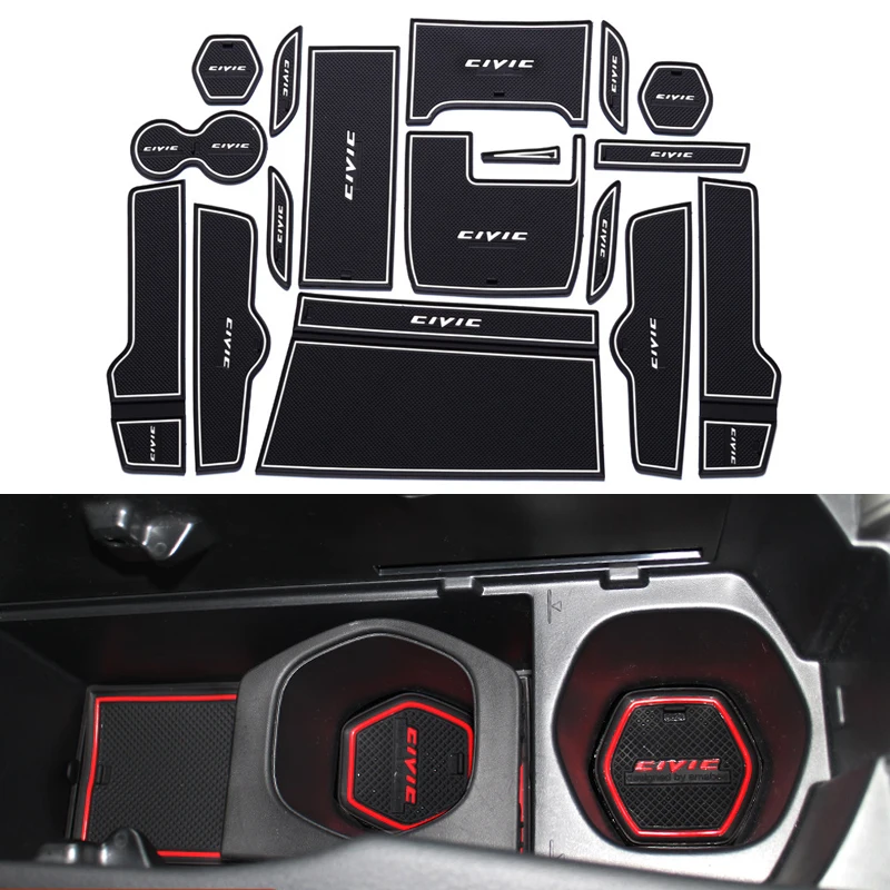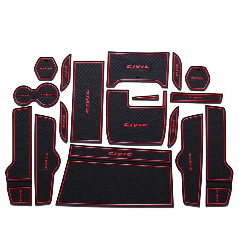 17 шт. нескользящий коврик для ворот и чашки, резиновый коврик для двери для HONDA CIVIC 2021, 2020, 2016-2019, 10 поколения, аксессуары для интерьера автомобиля