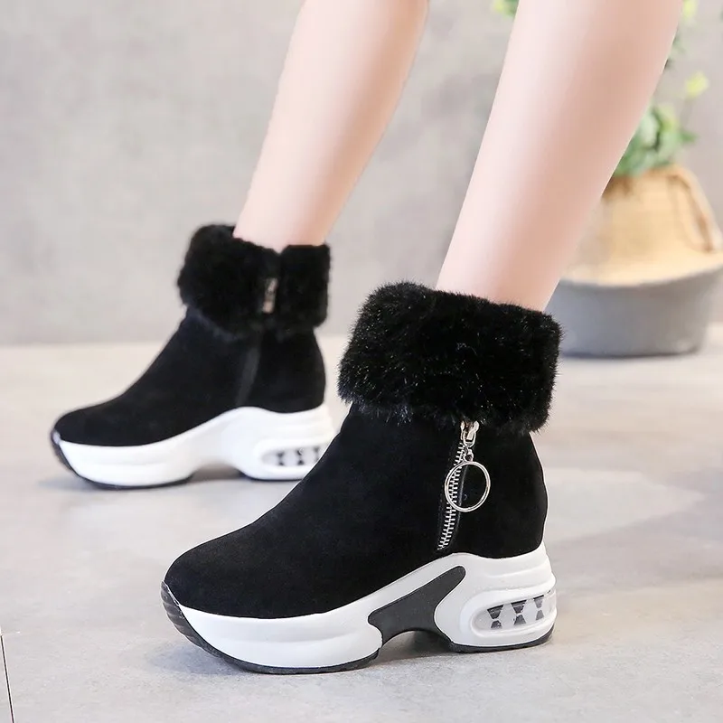 Женские ботильоны, теплая плюшевая зимняя обувь для женщин, ботинки на танкетке, женские ботинки на высоком каблуке, женские кожаные зимние ботинки, зимняя обувь 889