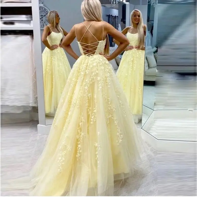 Женское свадебное платье без рукавов, желтое кружевное платье на тонких бретельках с открытой спиной, платье знаменитости для выпускного вечера, 2019