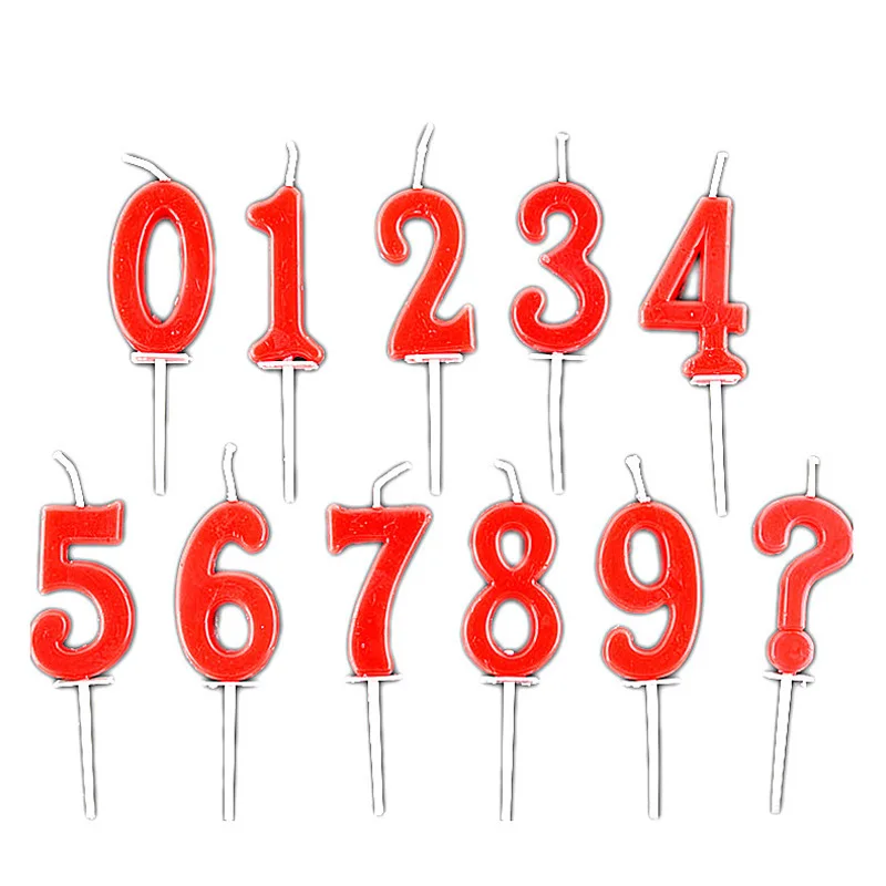 Свечи-цифры, красные, 0-9 и знак вопроса, день рождения, юбилей, бе...
