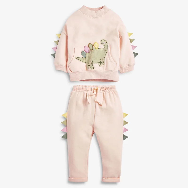 Осенняя одежда для маленьких девочек коллекция 2021 года, Осенний Повседневный хлопковый брендовый свитер розового цвета с рисунком динозавра + штаны с изображением животных Детский комплект, 20769