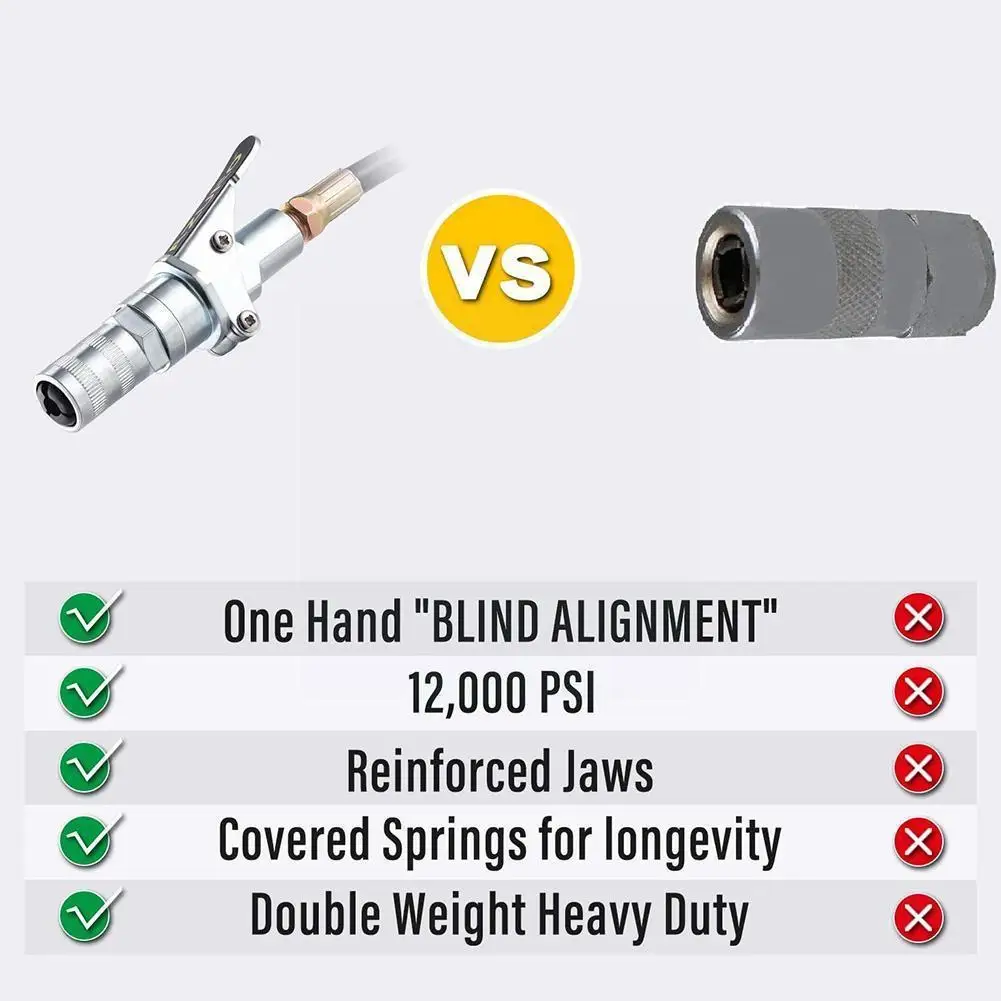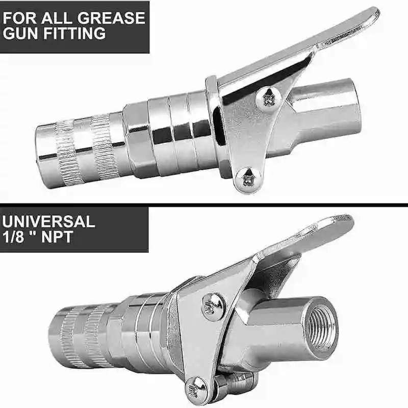 Блокировка и уплотнение до 12000 фунтов на квадратный дюйм: усиленные челюсти и высококачественные уплотнительные прокладки обеспечивают долговечную стабильность и предотвращают утечку даже при экстремальных давлениях 12000 фунтов на квадратный дюйм.Надежное качество конструкции: Изготовлен из высококачественной оцинкованной легированной стали, он обеспечивает производительность в течение всего дня в магазинах или гаражах и тяжелее и прочнее, чем любой другой смазочный муфт на рынке.Управление одной рукой: Гладкий телескопический механизм позволяет использовать одной рукой. Как только смазочный соединитель будет заблокирован на части, он будет оставаться неподвижным и отпустите обе руки, чтобы управлять смазочным пистолетом.Совместимость со всеми смазочными пистолетами: 1/8 NPT подходит для всех стандартных смазочных пистолетов и мини смазочных пистолетов. Он также подходит для всех аксессуаров для смазки DIN и SAE, просто замените существующую смазочную муфту.Упаковочный лист:1 * СМАЗКА муфта