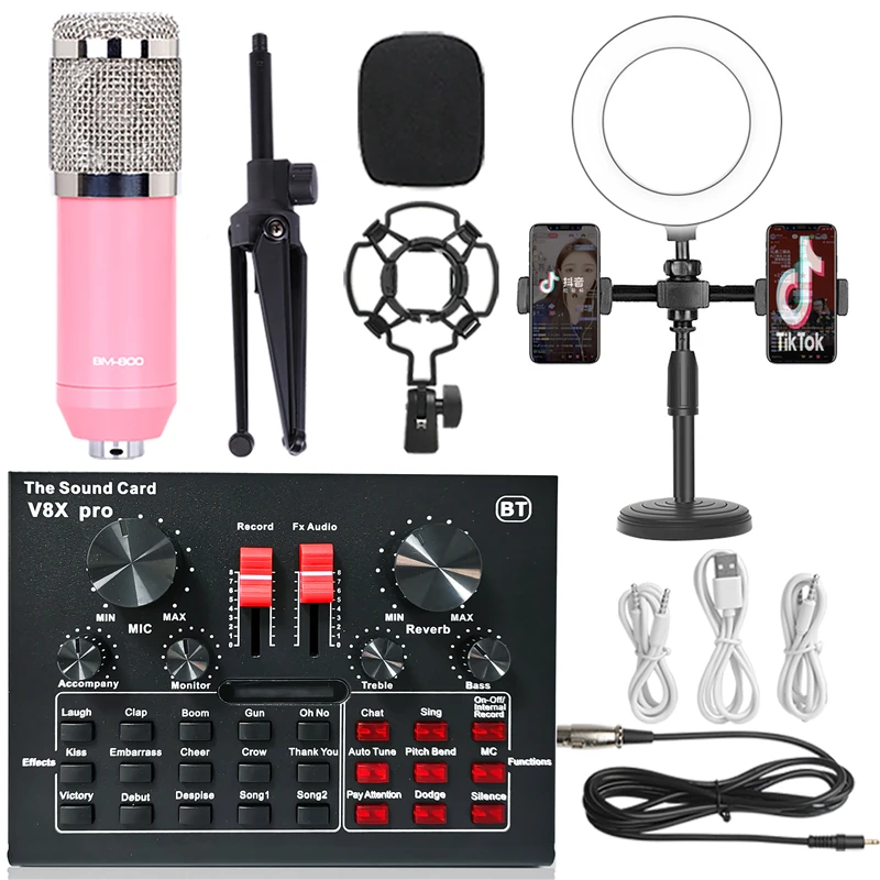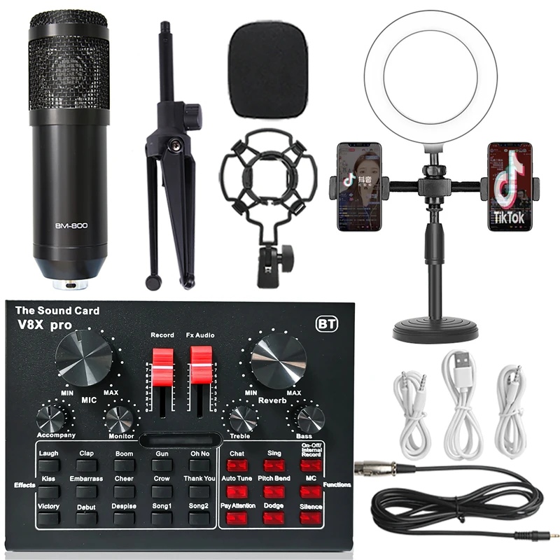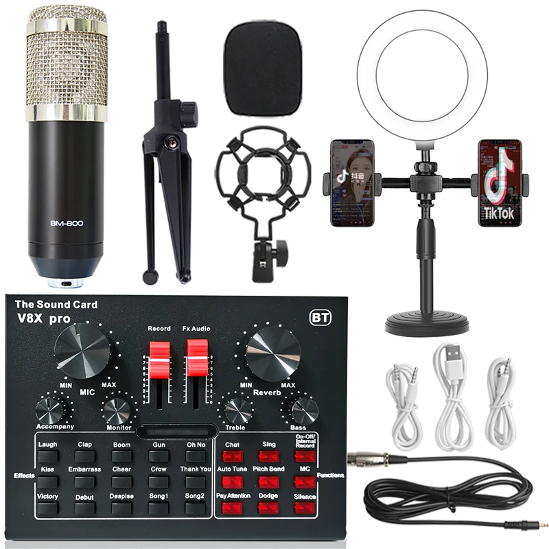 Беспроводной микрофон BM800, звуковая карта V8XPRO, профессиональный студийный конденсатор с кольцевым заполнясветильник для игр, пения, микрофон для караоке