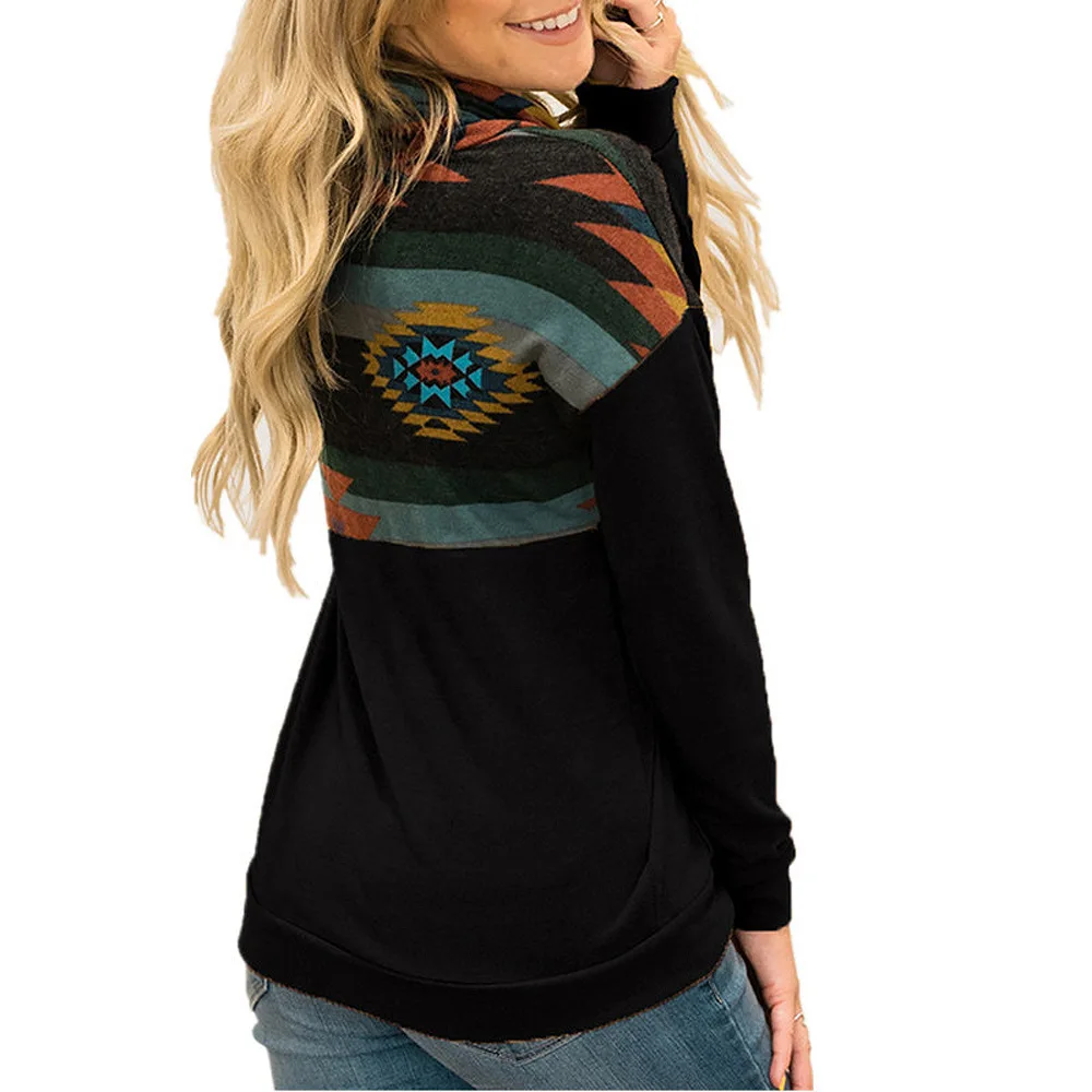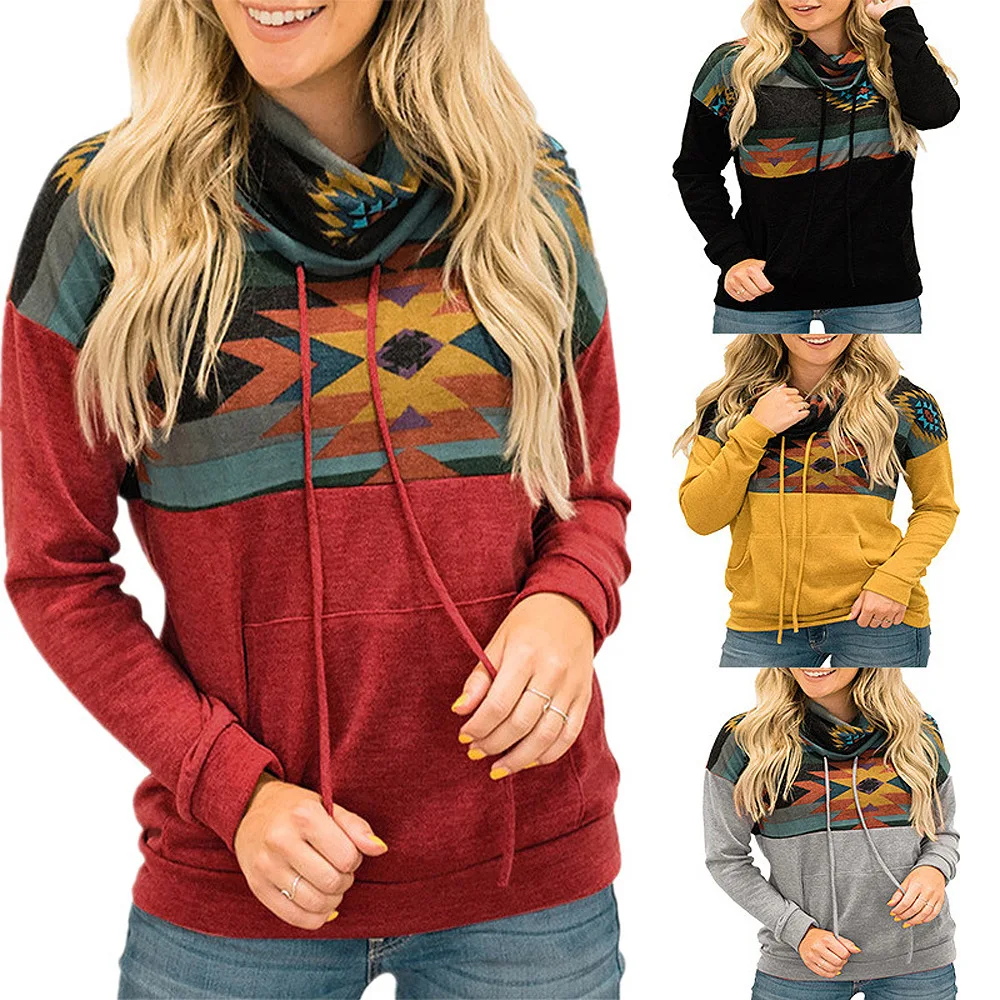 Женский свитер с капюшоном, свитшот с длинным рукавом и принтом в этническом стиле, Осень-зима