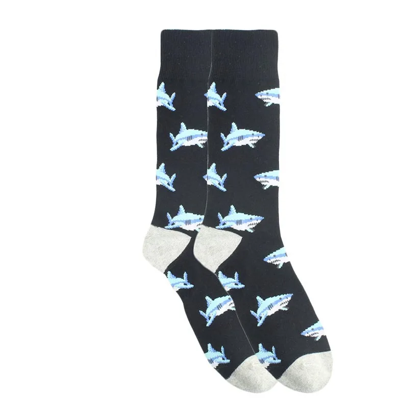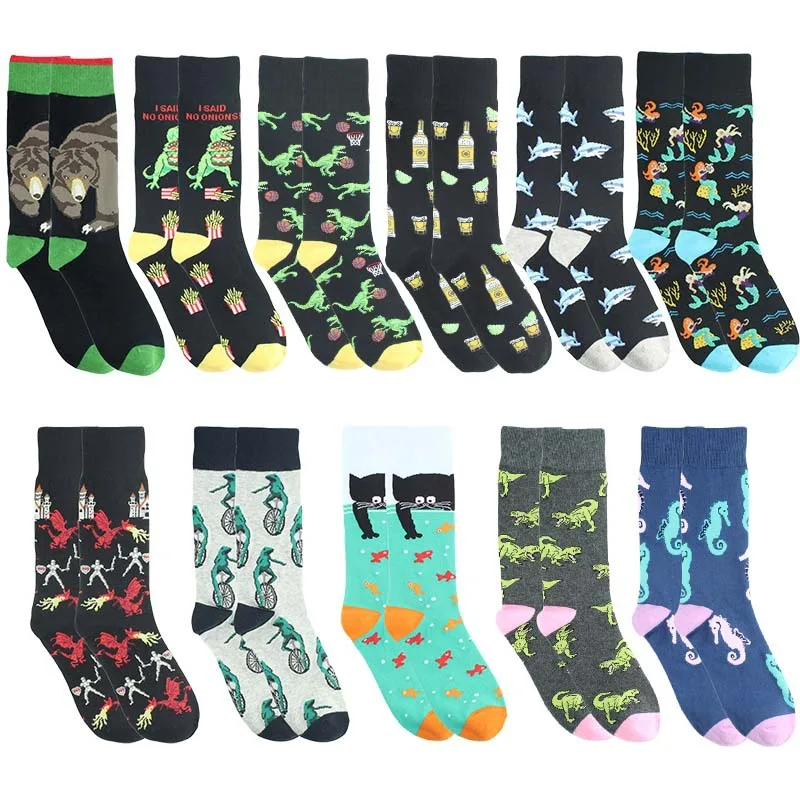 Носки мужские в стиле Харадзюку, забавные креативные модные повседневные с различным рисунком акулы, динозавра, морской лошади, 1 пара