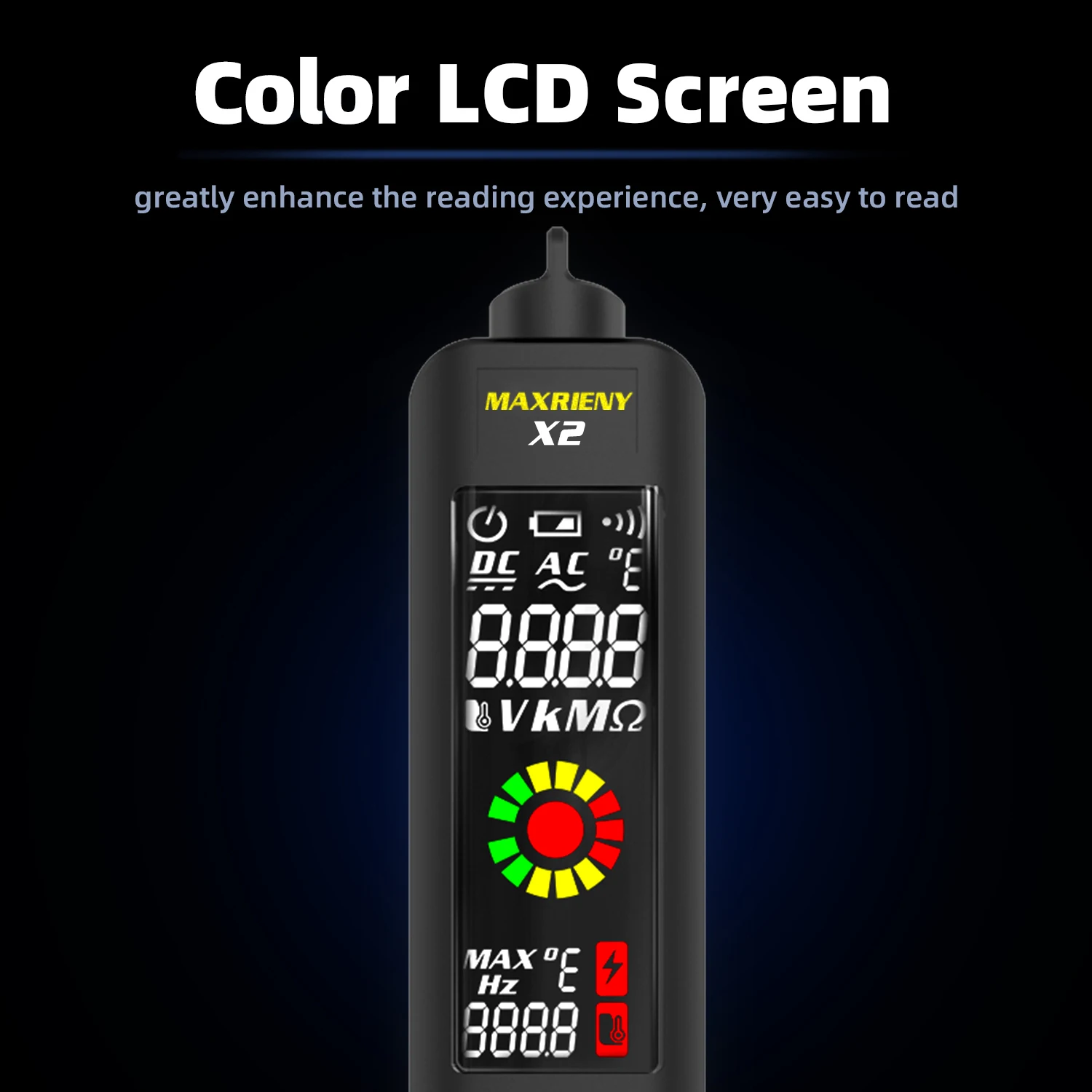Инфракрасный термометр MAXRIENY X2, цифровой мультиметр, детектор напряжения, тестер, Бесконтактный ИК-термометр с цветным ЖК-дисплеем-20 380