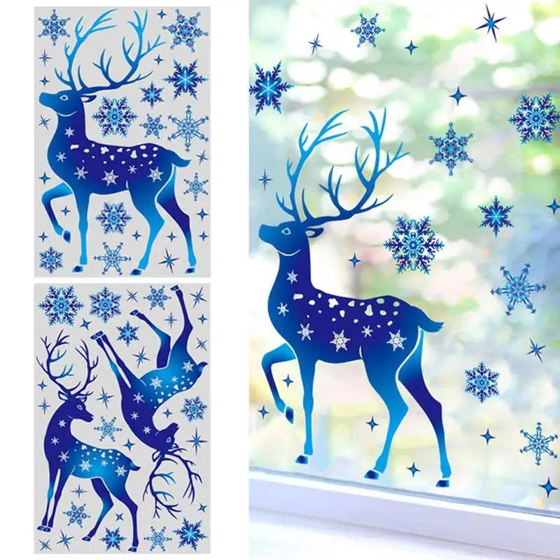 1 лист снежинка декоративная наклейка на окно наклейка на стену Лось декоративные снежинки электростатические синие наклейки на Рождество