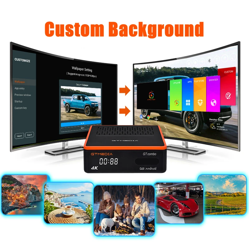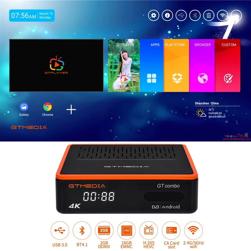 1. Android 9.0 TV BOX + DVB-S2X/T2/CH.265/HEVC 10 бит2. Спутниковые каналы, DVB-S/S2/S2X мульти-поток3. Каналы наземного ТВ-приемника, DVB-t/T24. Кабель/ATSC-C(J.83B)/ISDBT, AVS +, DVB-C5. 4K/8K ультра-высокой четкости дисплей HD6. Поддерживает полный ключ PowerVu, DRE & Biss;7. Цветной интерфейс GTUI, DIY обои.8. Встроенный 2,4G wifi9. Bluetooth 4,110. Слот для карт CA, поддержка Tivusat и другиеКарта Европы CA11. M3U Xtream GTPlayer APP12. CCCAMd, NEWCAMd, MGCAMd13. Пульт дистанционного управления голосом BT + GoogelВеб-сайт технической поддержки: www.freesat.cn