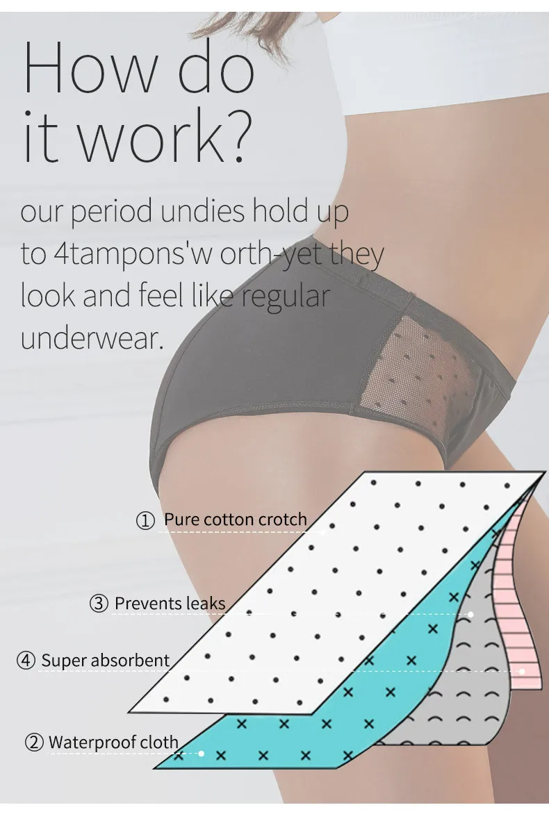 4-слойные сексуальные кружевные герметичные менструальные трусики, ...