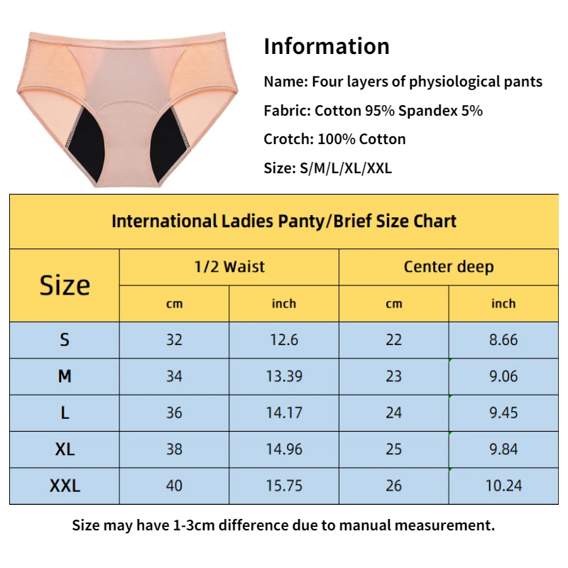 Трусики для менструации женские, 4 слоя хлопка, дышащее водонепрони...