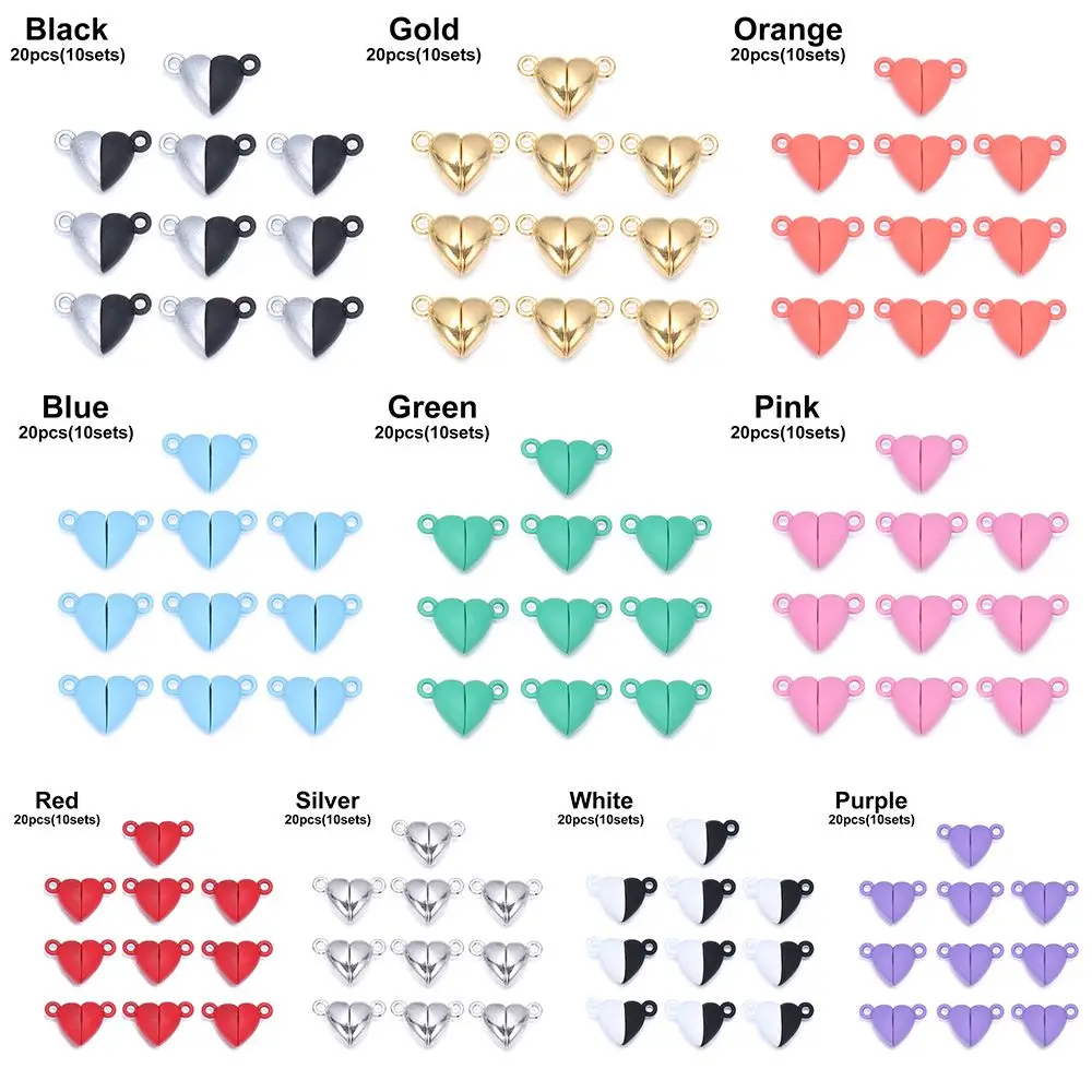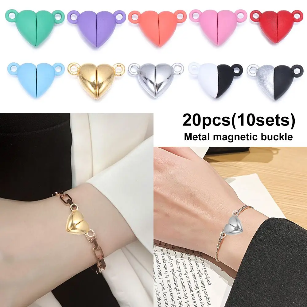 20 шт. (10 комплектов) Концевики ручной работы, бусины, шармы, пара браслетов, соединенные застежки, любовь, сердце, магнитная пряжка