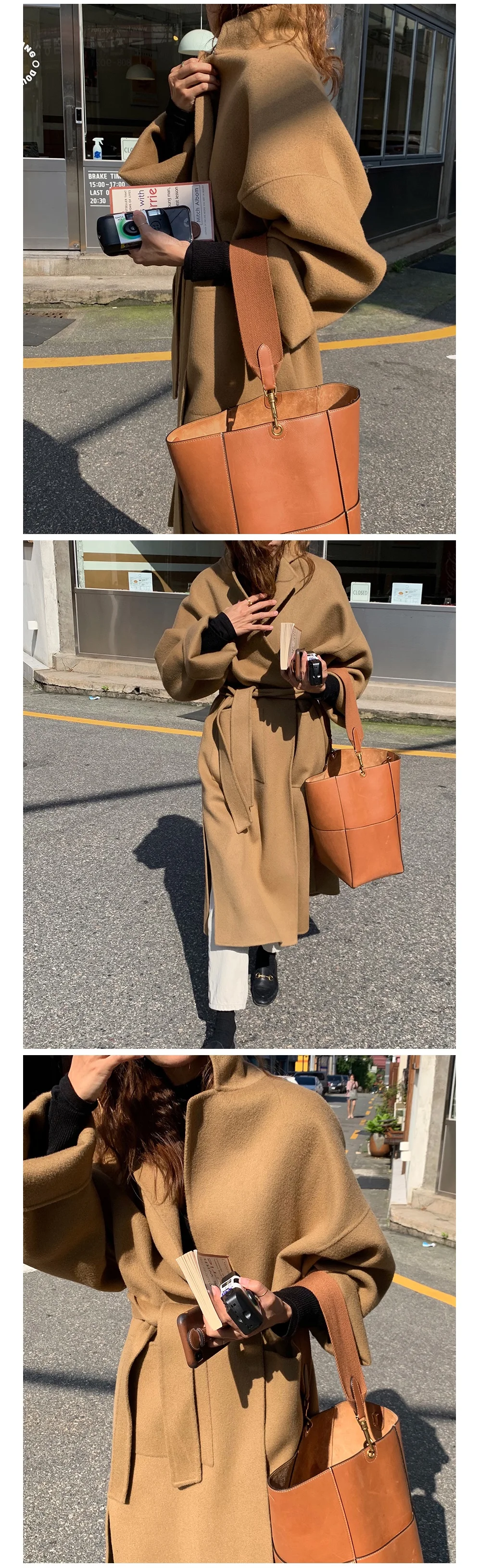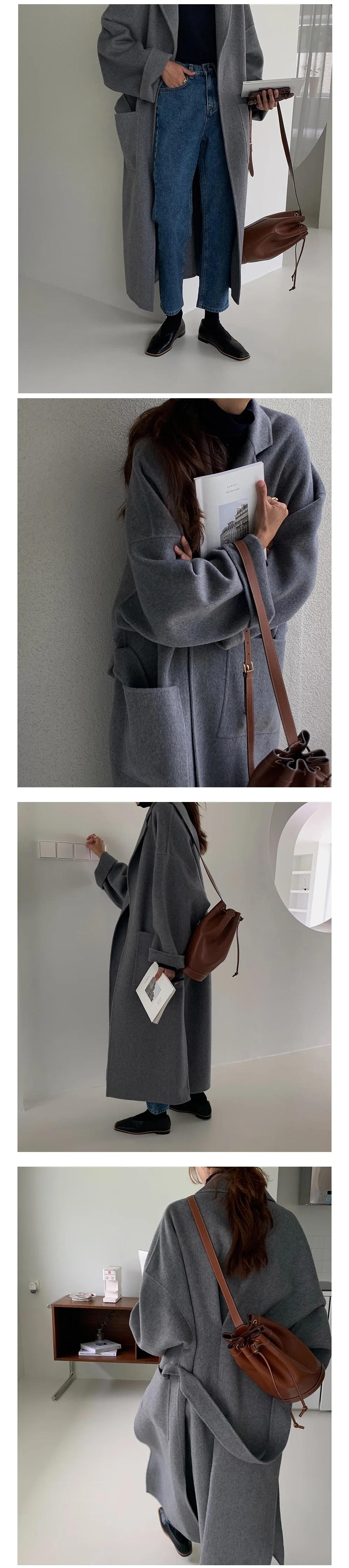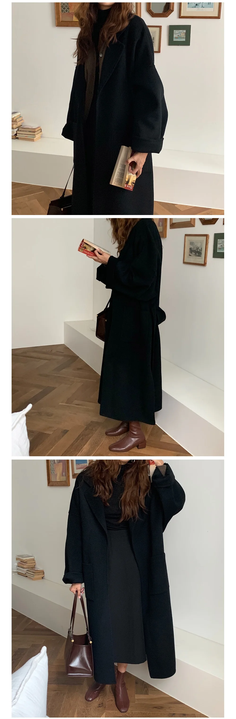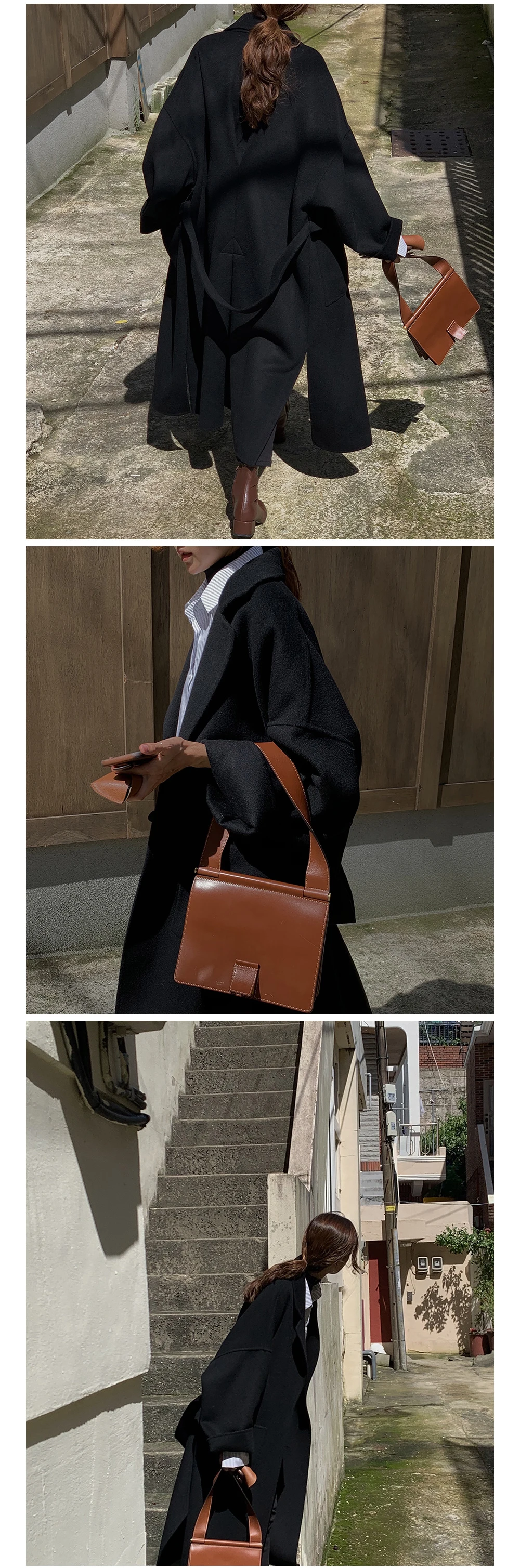Женское шерстяное пальто в стиле ретро, свободная шерстяная куртка с большими карманами, Длинная шерстяная ветровка с разрезом, пальто на осень и зиму
