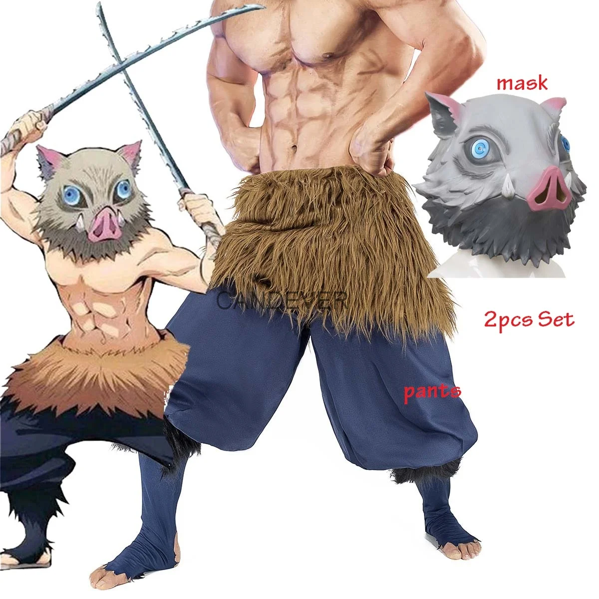 Костюм для косплея Kimetsu No Yaiba Hashibira Inosuke из аниме рассекающий демонов, одежда для косплея, штаны, костюм на Хэллоуин, маска на голову свиньи для мужчин и взрослых