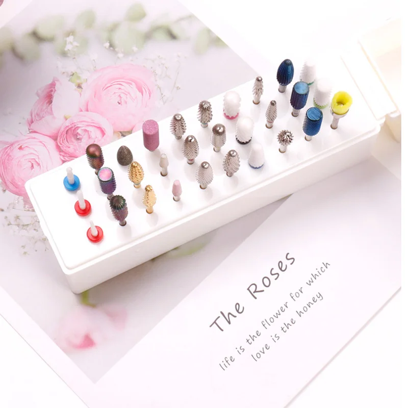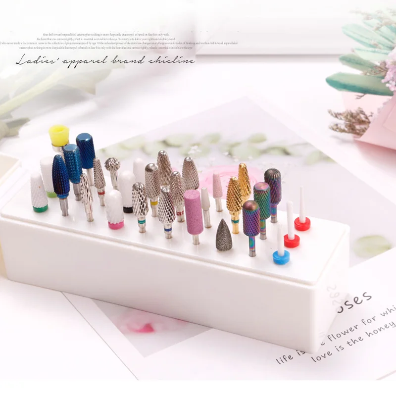 30 отверстий для ногтей, сверло для шлифовки, контейнер для хранения, сверла для дизайна ногтей, чехол для акриловых ногтей, подставка для стойки, инструменты 096