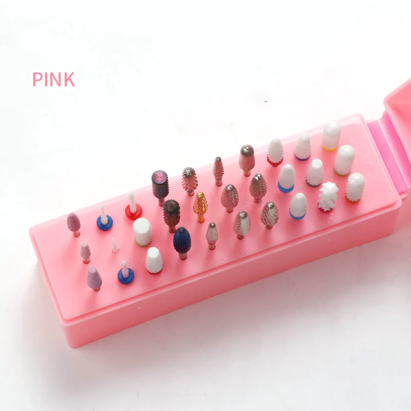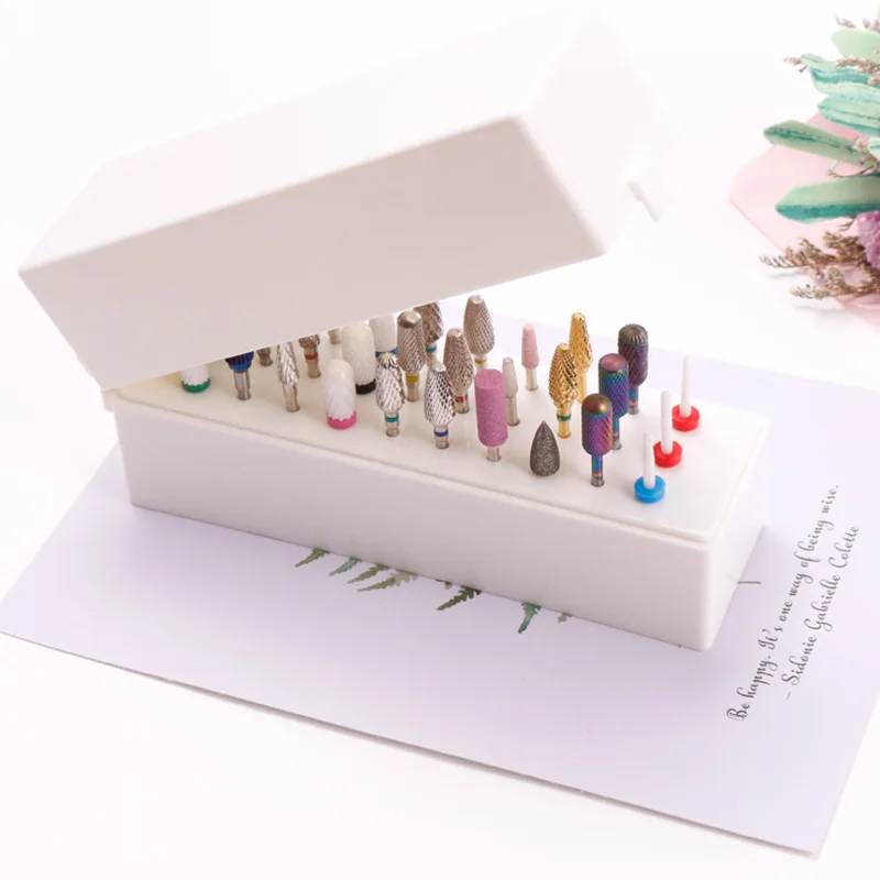 30 слотов белыйрозовый сверло для ногтей пластиковая коробка для хр...