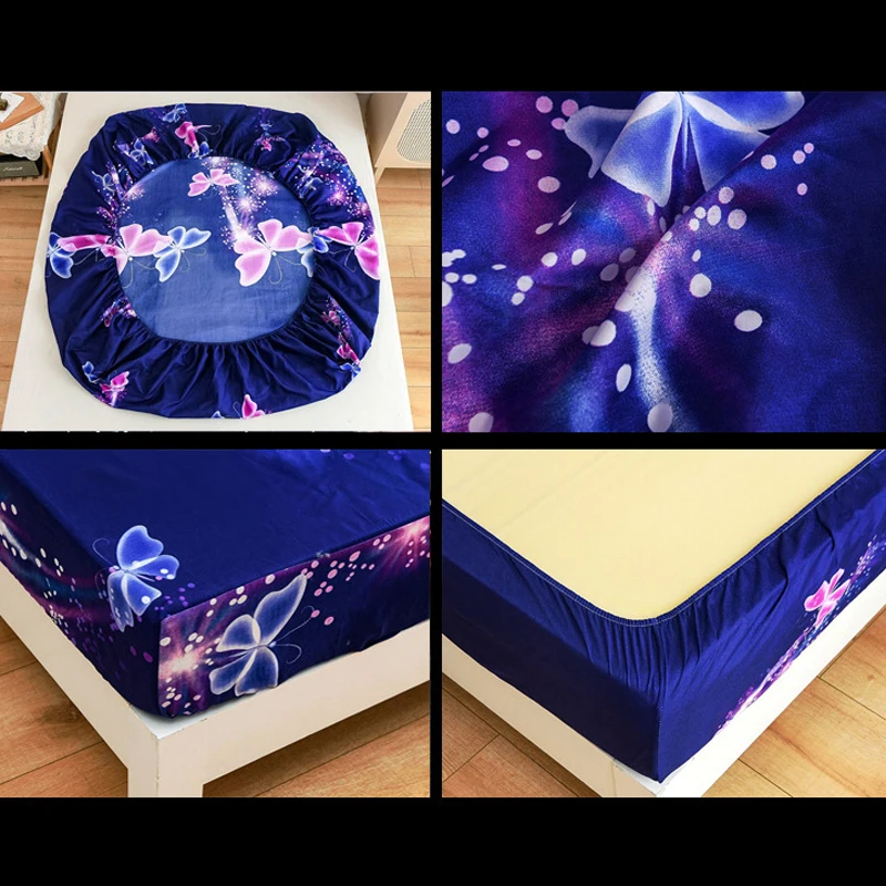 Простыня с принтом из 100% полиэстера, наматрасник с четырьмя углами, простыня на резинке без подушки, 4 размера
