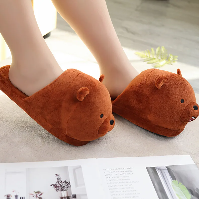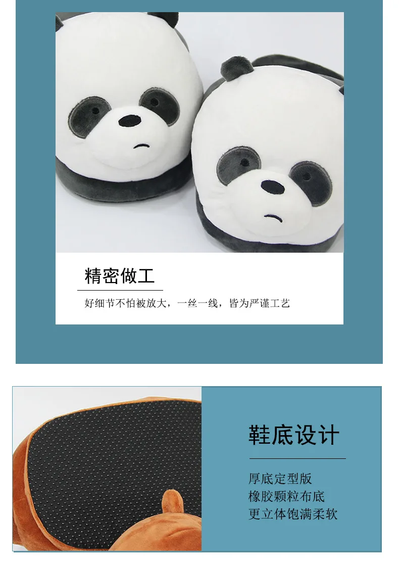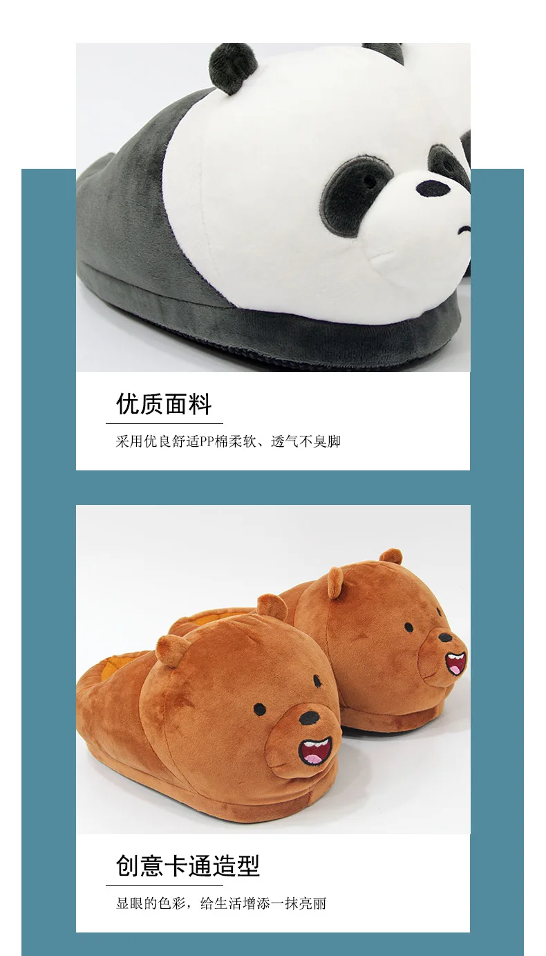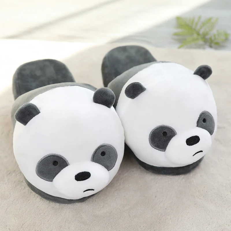 Симпатичные панды сланцы плюшевые тапочки для пола Для Девочек Смешные животные белый медведь пушистые тапочки для женщин мужчин зимние искусственные
