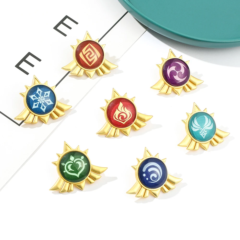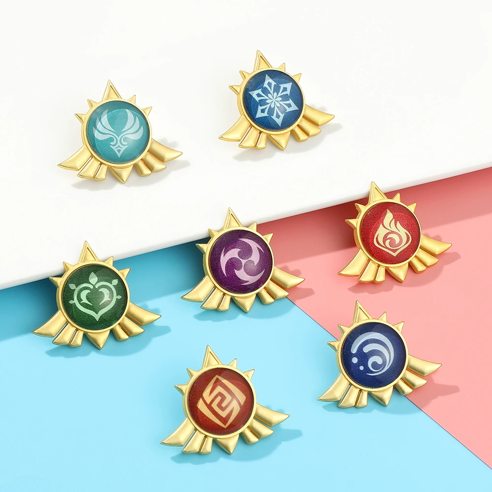 Аниме Genshin Impact брошь семь элементов Waterweed Thunder Rock Fire Wind Ice металлический значок на лацкан ювелирные аксессуары