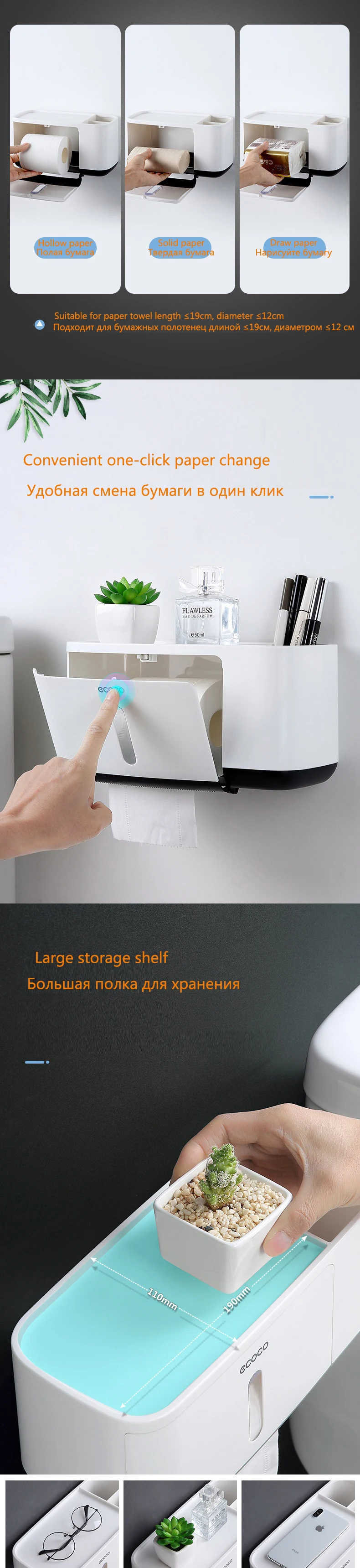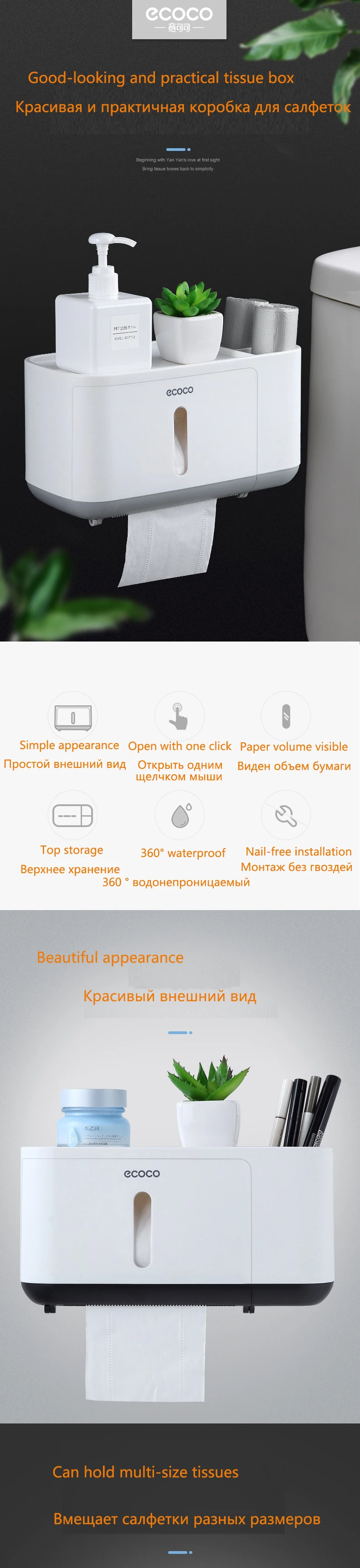 Ecoco коробка для туалетной бумаги, водонепроницаемая коробка для салфеток, держатель для рулона бумаги без гвоздей, диспенсер для бумаги для ванной комнаты, кухонного туалета