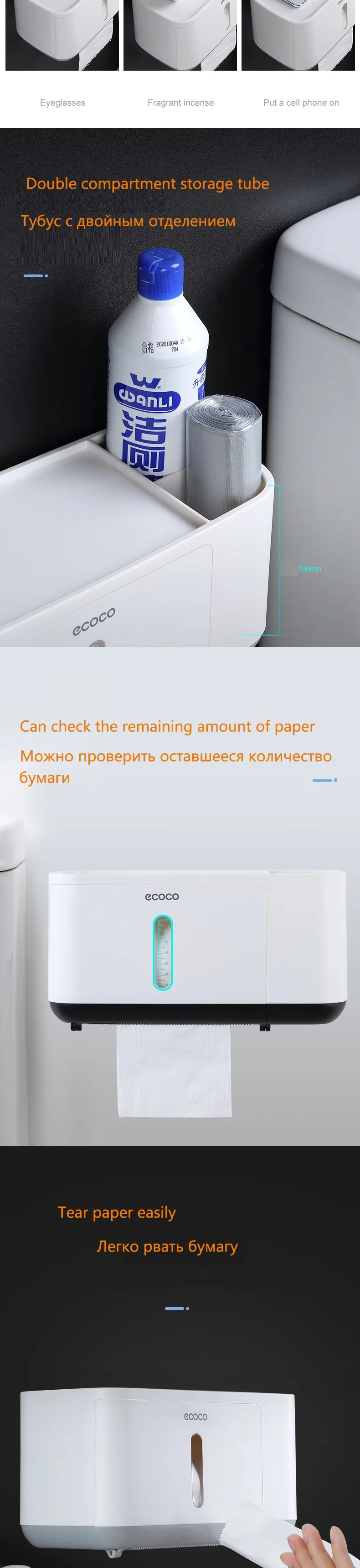 Водонепроницаемый держатель для туалетной бумаги ECOCO, настенный д...