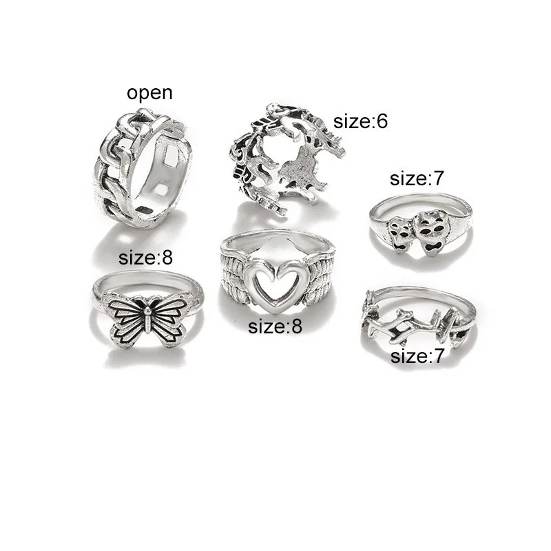 6 шт.компл. модные ювелирные изделия кольцо в стиле ретро сердце цв...