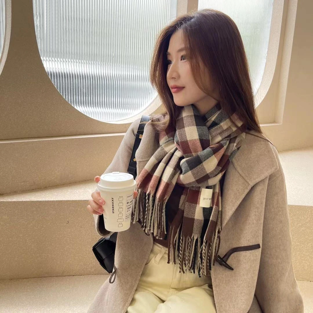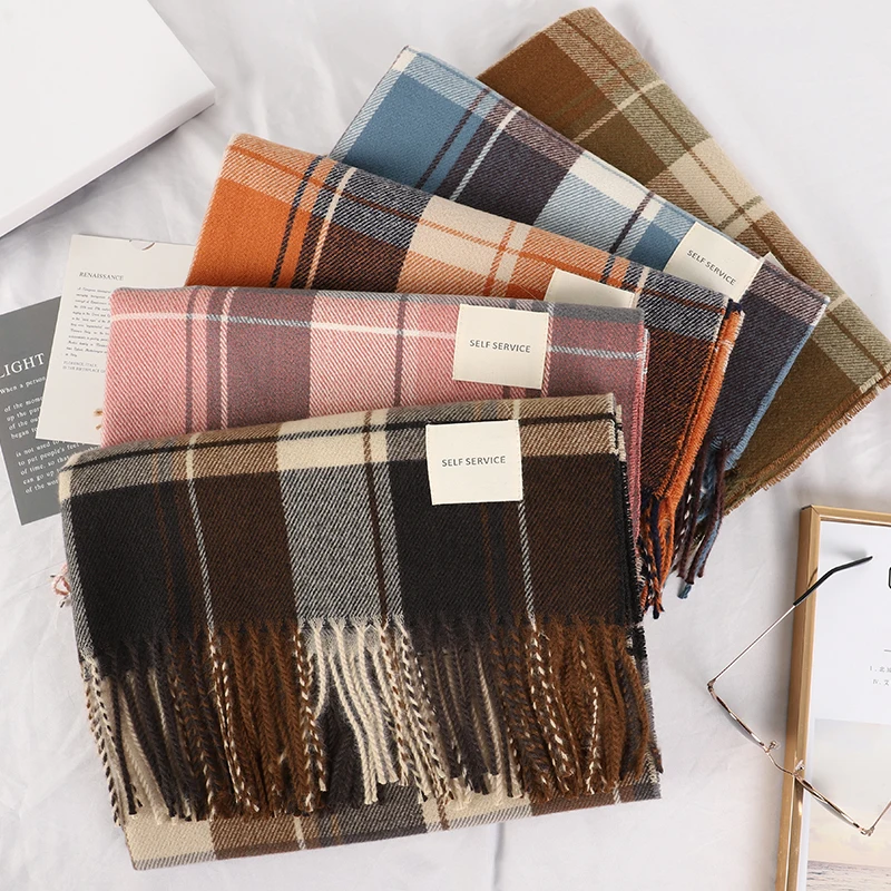 Роскошный клетчатый шарф, зимний теплый кашемировый женский длинный шарф-Бандана из пашмины, женский платок с кисточками, шаль и палантин, дизайн 2021