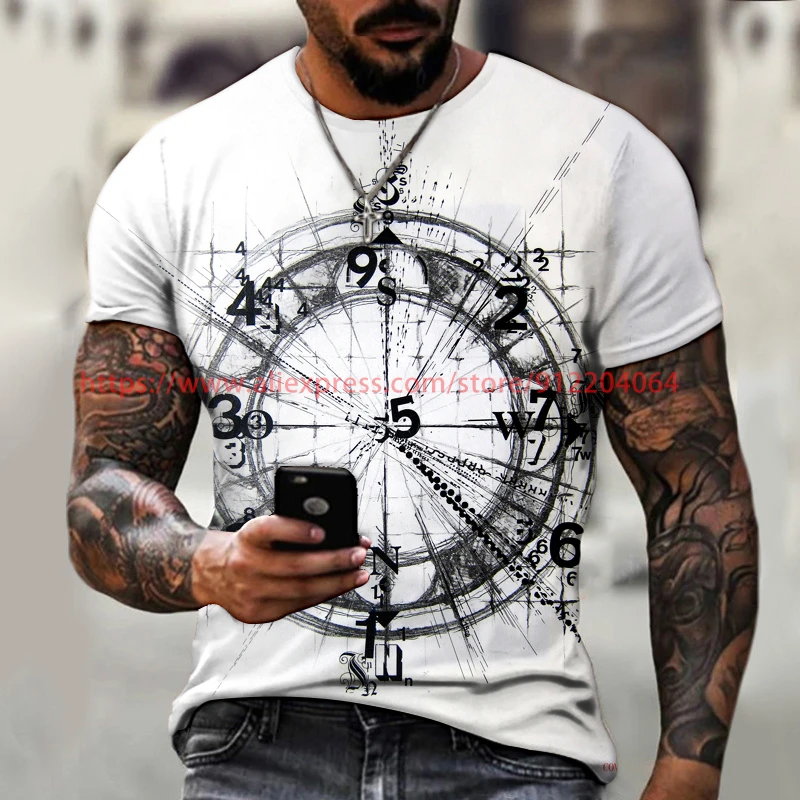 Новинка 2022, мужская летняя футболка с 3D-принтом компаса, футболк...