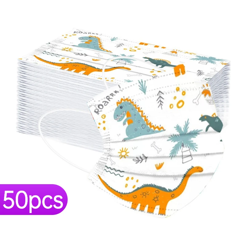 Маска детская одноразовая 3-слойная с фильтром, утолщенная гигиеническая маска для лица и рта для косплея на Хэллоуин, шапка, 50 шт.