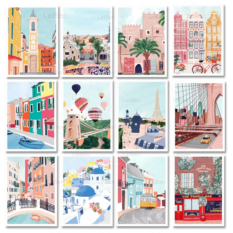 Аниме путешествия город пейзаж постер марокканский Париж декоративн...