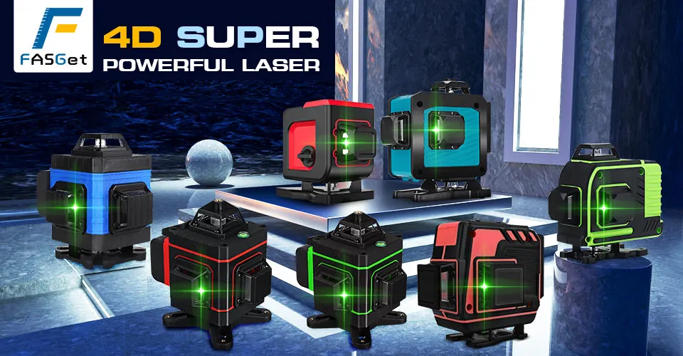 Самонивелирующийся зеленый лазерный уровень, 16 линий, 360 градусов