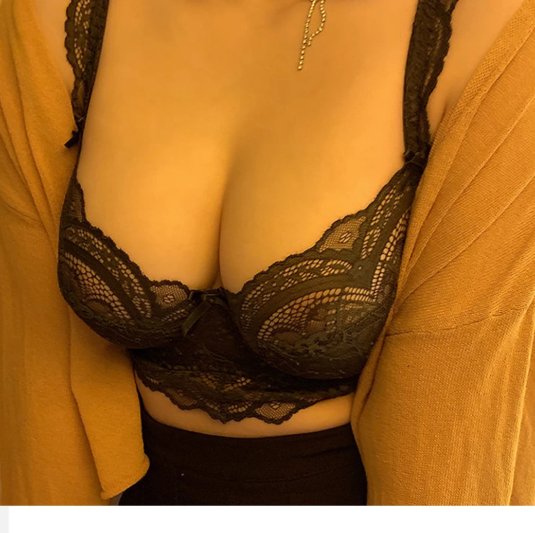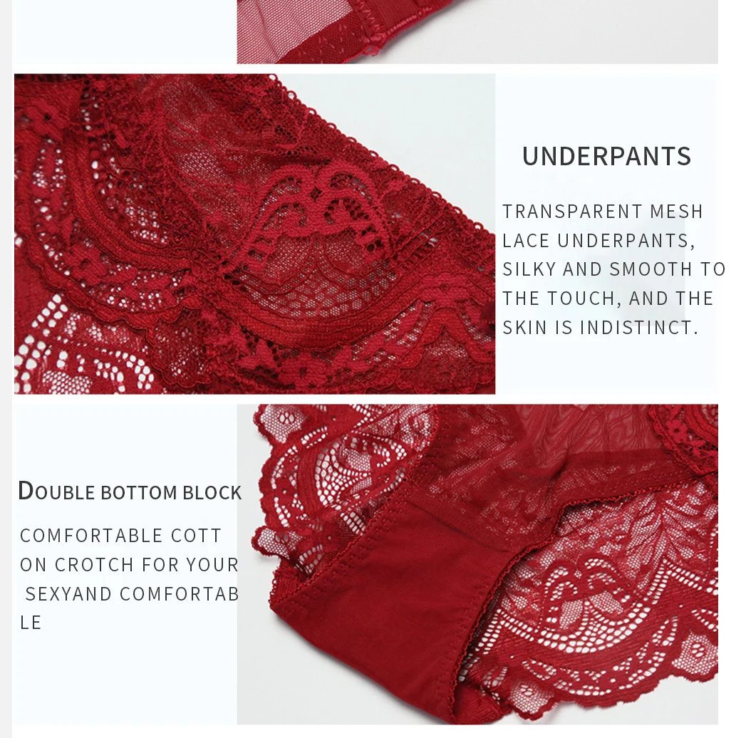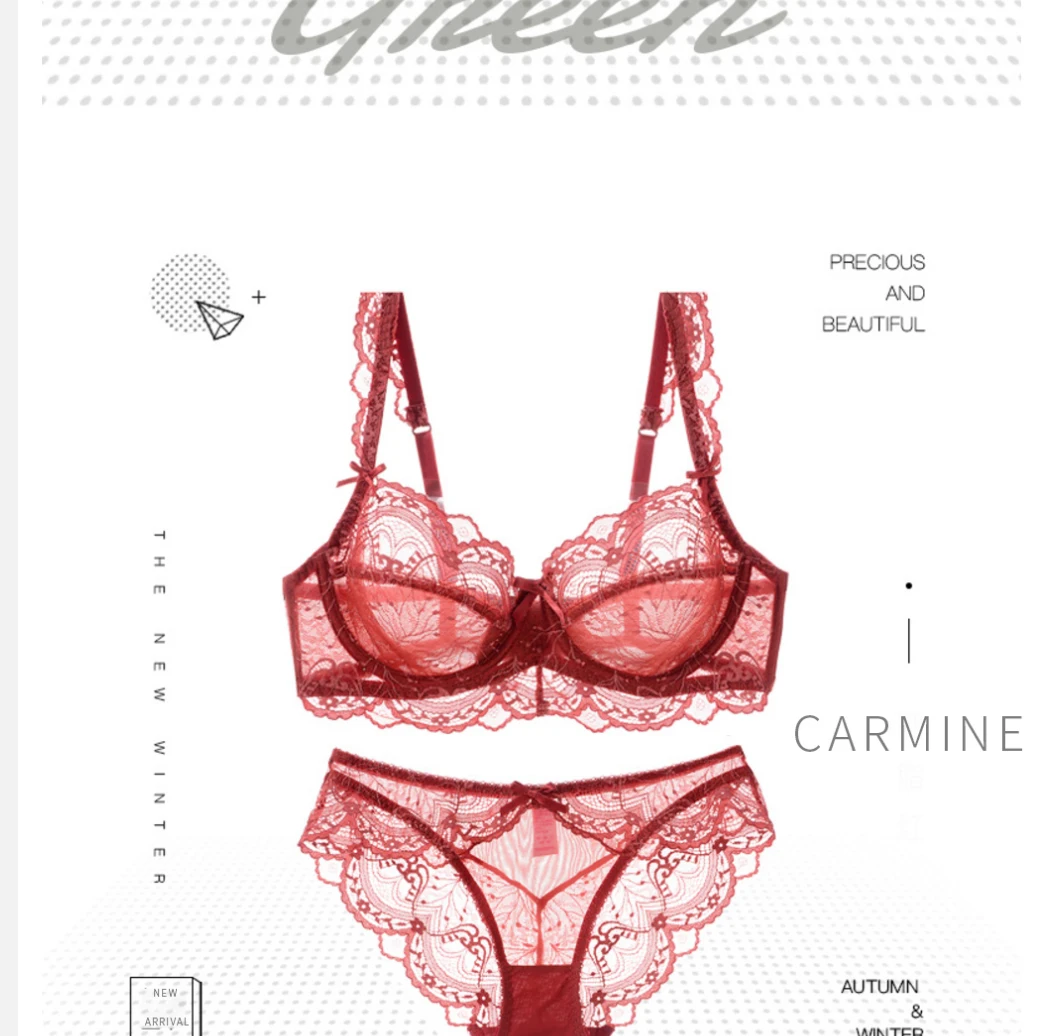 Женский кружевной комплект из бюстгальтера и трусов, ультратонкое сексуальное нижнее белье с эффектом пуш-ап, чашка A, B, C, D, E, размера плюс
