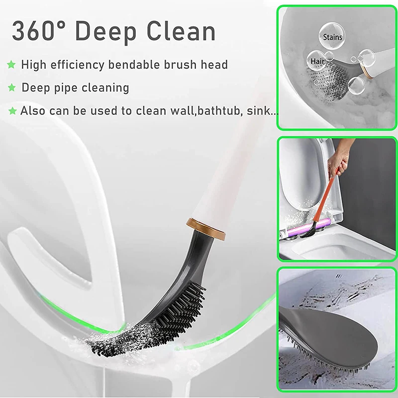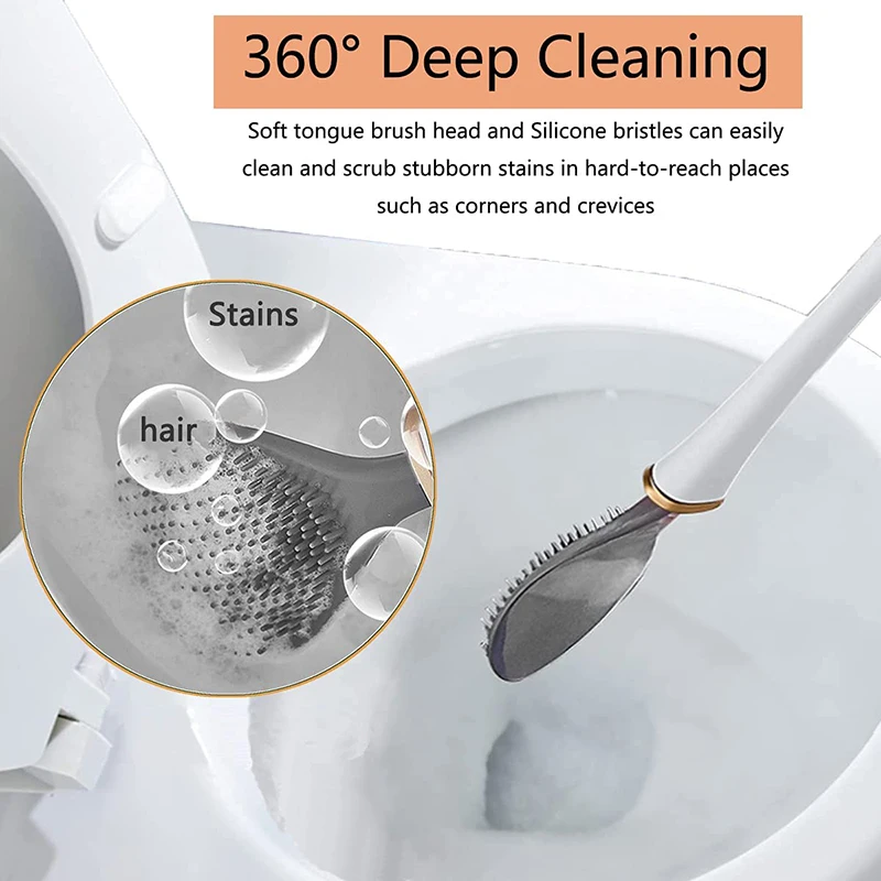 TPR щетинки мягкие, и длинные силиконовые щетинки имеют лучшую способность очистки. Он может легко войти в углы сиденья унитаза при 363 градусах, чтобы глубоко очистить унитаз, не повреждая эмаль.