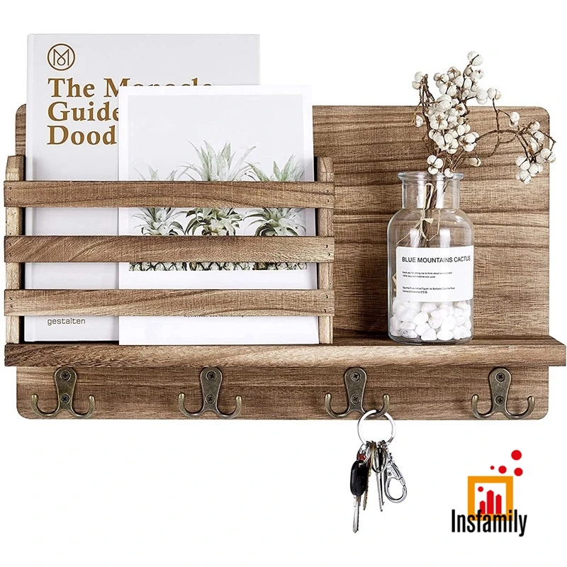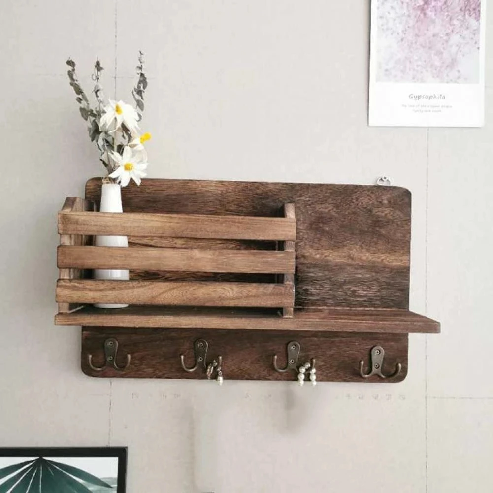 Деревянный настенный держатель для почты, органайзер с 4 двойными крючками для ключей, аксессуары для украшения дома, крючок для входного ключа