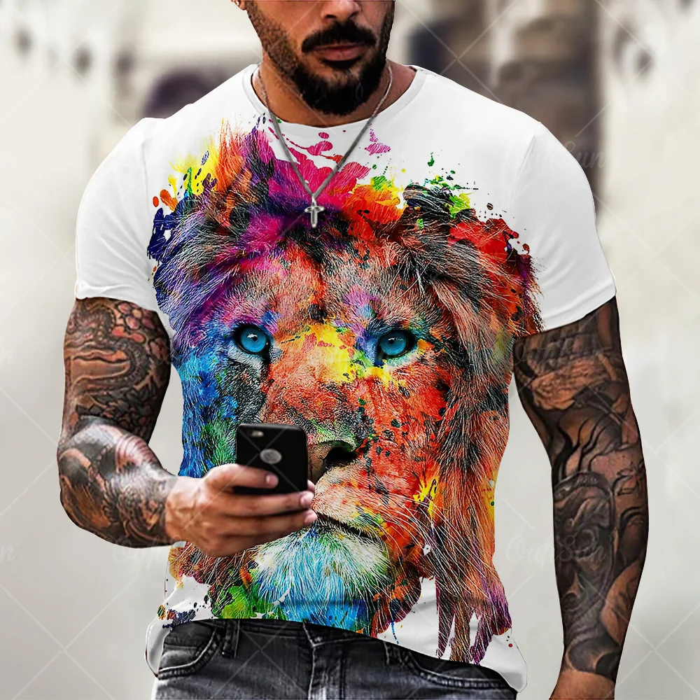 Новинка лета 2021, Мужская футболка с круглым вырезом, одежда с короткими рукавами, футболка с 3d-рисунком животного, Льва, мужская Свободная Повседневная футболка большого размера