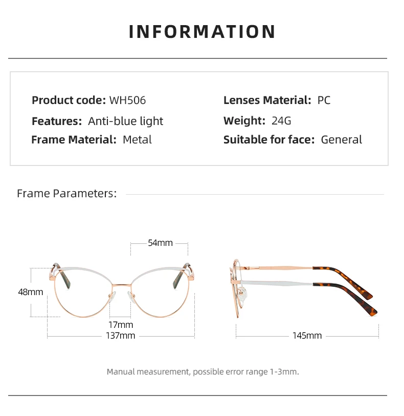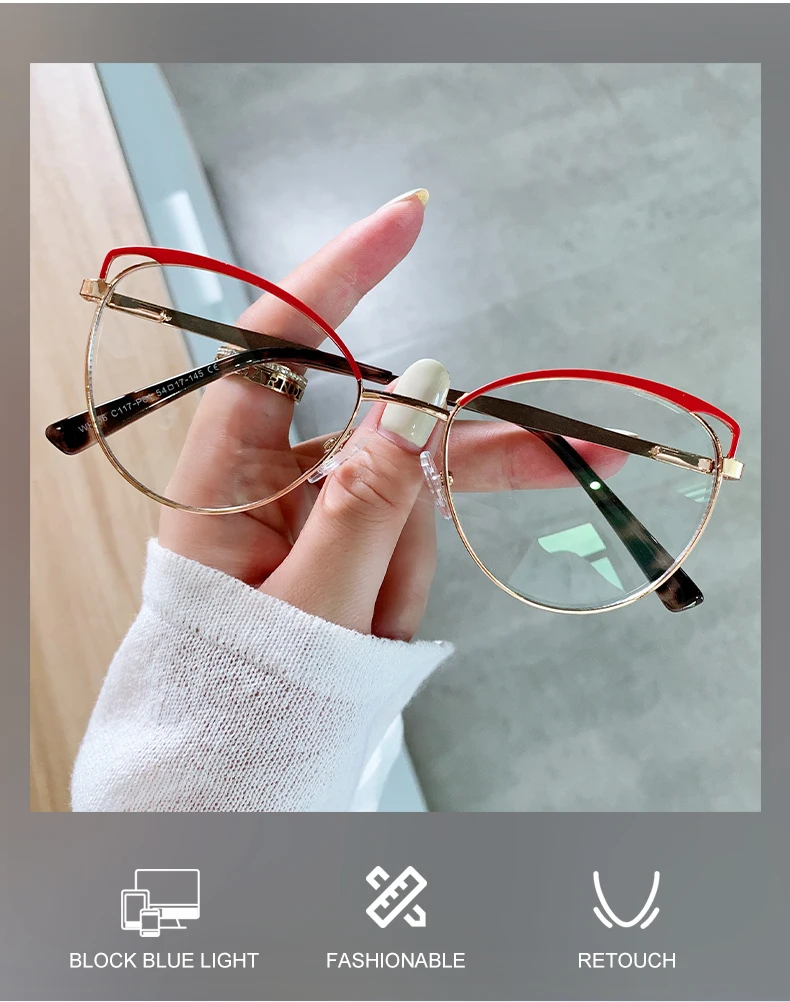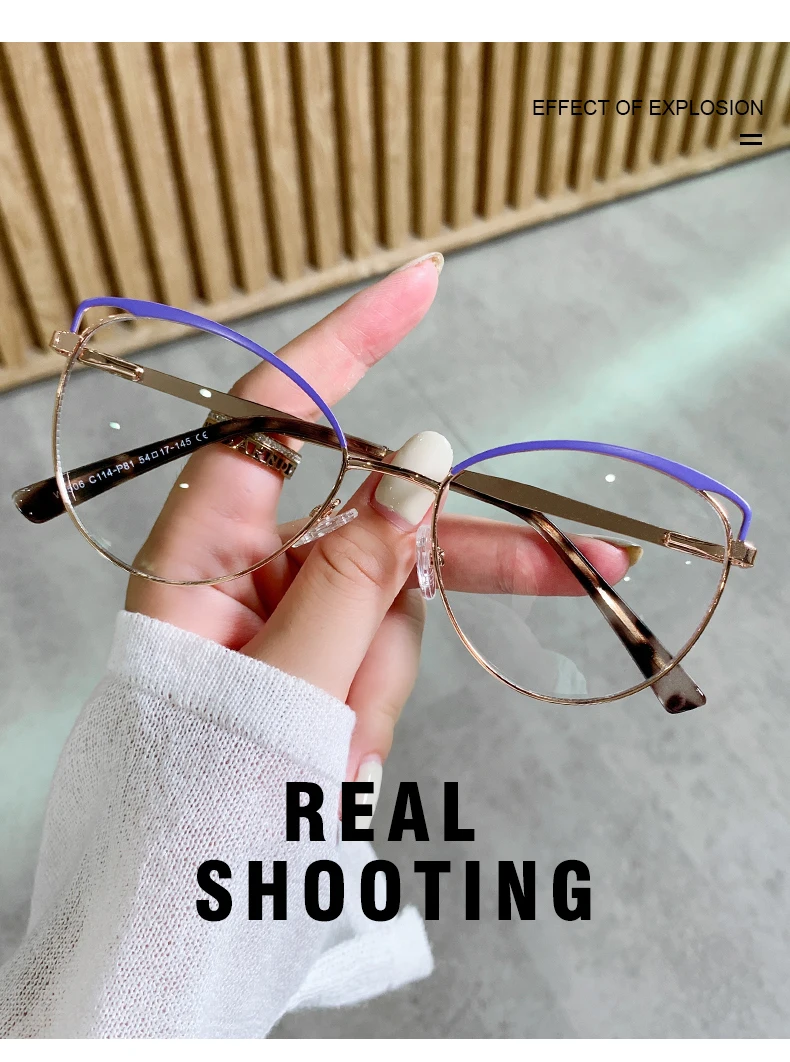 Женский анти-синий светильник, блокирующие очки, металлическая оправа кошачий глаз, очки для девушек, компьютер, близорукость, очки по рецепту, оправа WH506